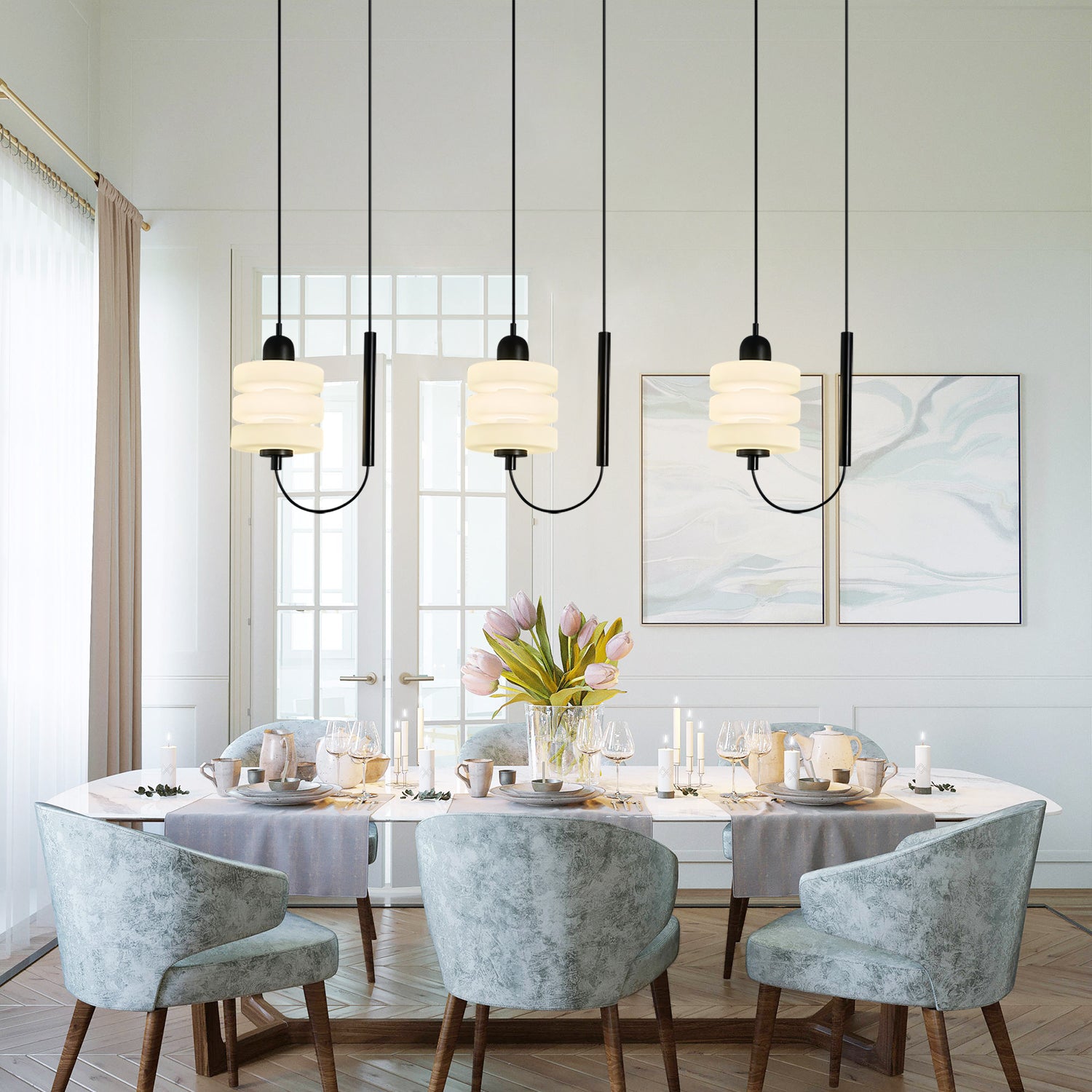 The Alabaster Triple Pendant features three suspended disc-shaped shades crafted from alabaster material, emitting diffused downward lighting.