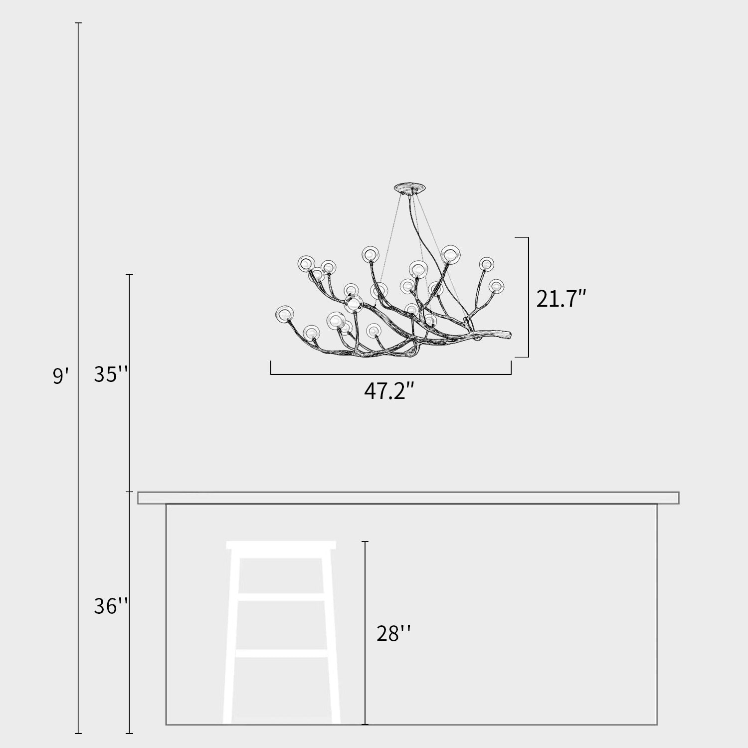 The Branch Bubble Ball Chandelier features a dendritic metal structure with multiple suspended spherical shades. Each shade is constructed from transparent glass or acrylic material, creating bubble-like visual effects. Suitable for installation in residential dining rooms, hotel lobbies, or commercial spaces with sufficient ceiling height.