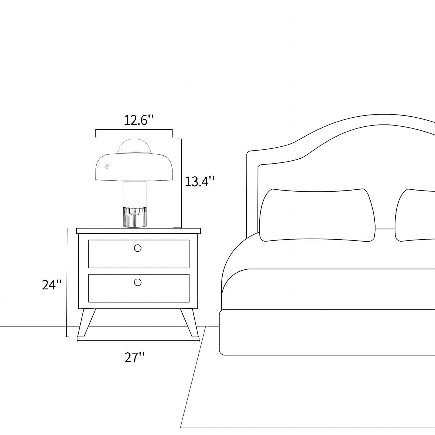 The Brumbury Glass Table Lamp, also known as the Mushroom Tart Lamp, takes design cues from the unique shapes of a tart and a mushroom. It showcases an orange plexiglass dome paired with a white chrome steel inner foot and a white lacquered aluminum base. This lamp’s form, reminiscent of both a mushroom and an egg tart, adds a lively and distinctive touch to any interior setting.