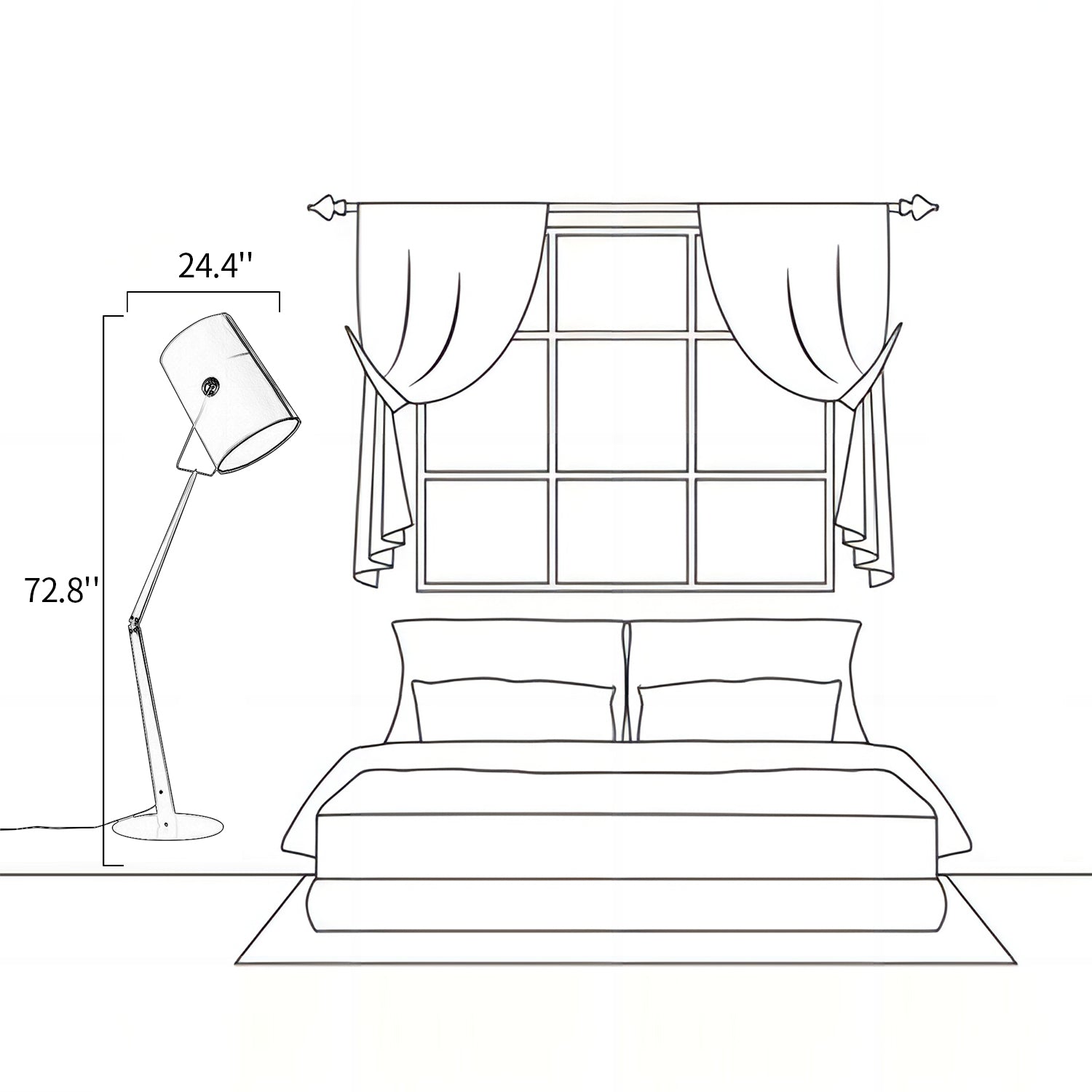 The Canvas Arc Floor Lamp brings a lively and playful ambiance to any space. Its fabric lampshade features a patchwork design and textured surface that, when illuminated, creates a warm, tent-like glow. The shade rotates a full 360°, allowing versatile light direction. Crafted with a lacquered alloy pole, this lamp combines durability with elegant softness, making it an essential decorative piece for your home.