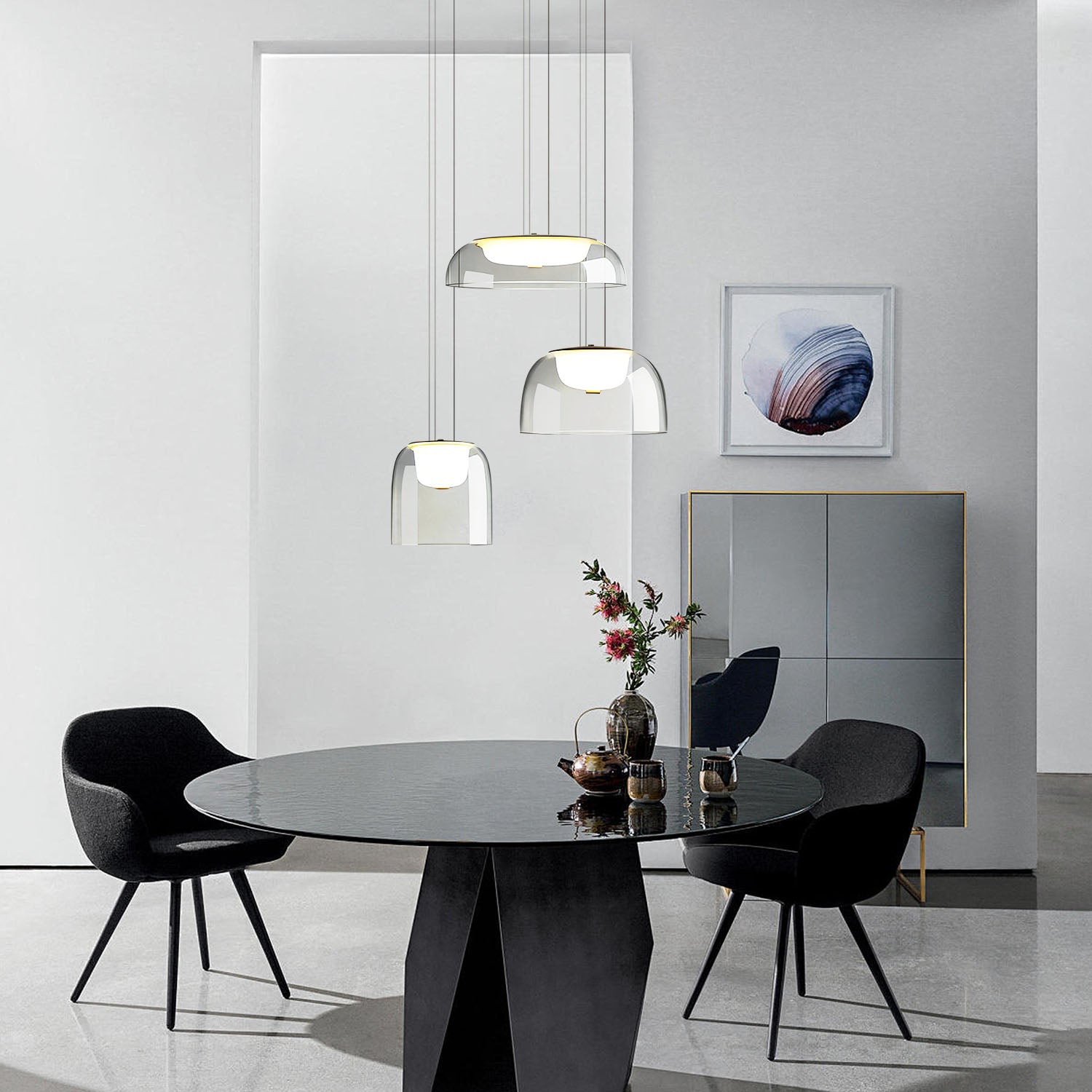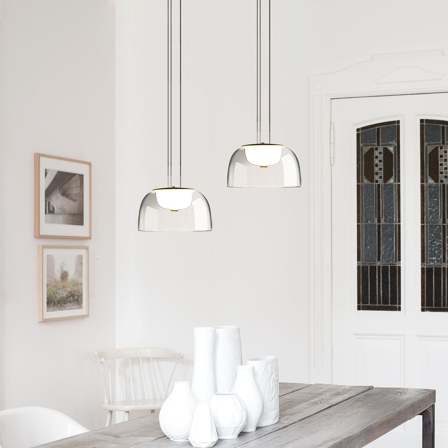 The Clifton Glass Pendant Light features a cylindrical glass shade suspended by a black metal cable. The shade is constructed from clear glass with smooth surface finishing. The transparent glass shade allows direct downward light distribution when illuminated. Suitable for installation in residential kitchens, dining areas, or commercial spaces.