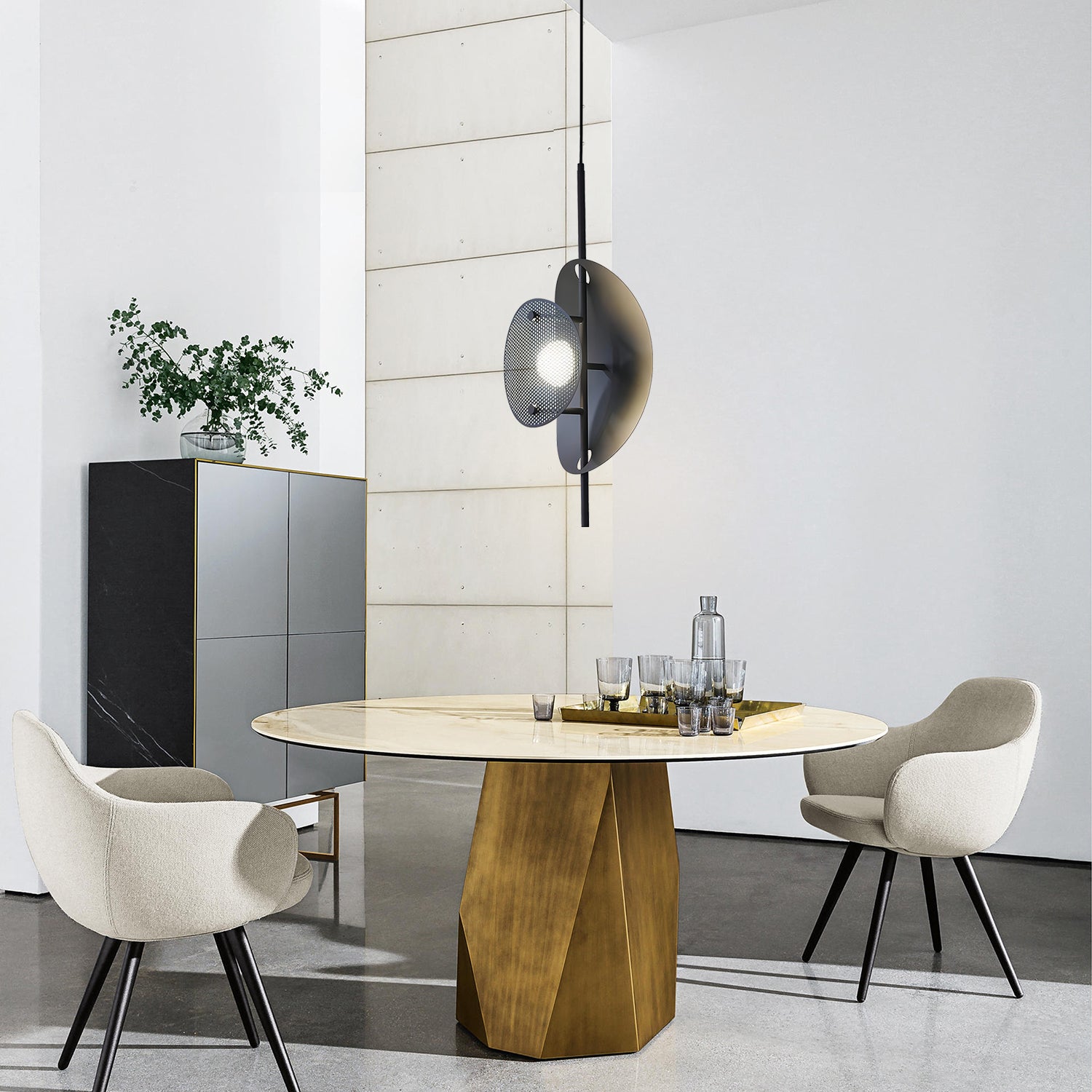 The Corolle Pendant Light features a balanced and modern design with a disc-shaped shade and metal frame. Its structure allows soft and comfortable illumination, suitable for dining areas, living rooms, or offices. Made from durable materials, the pendant light is designed for long-term use and easy maintenance.