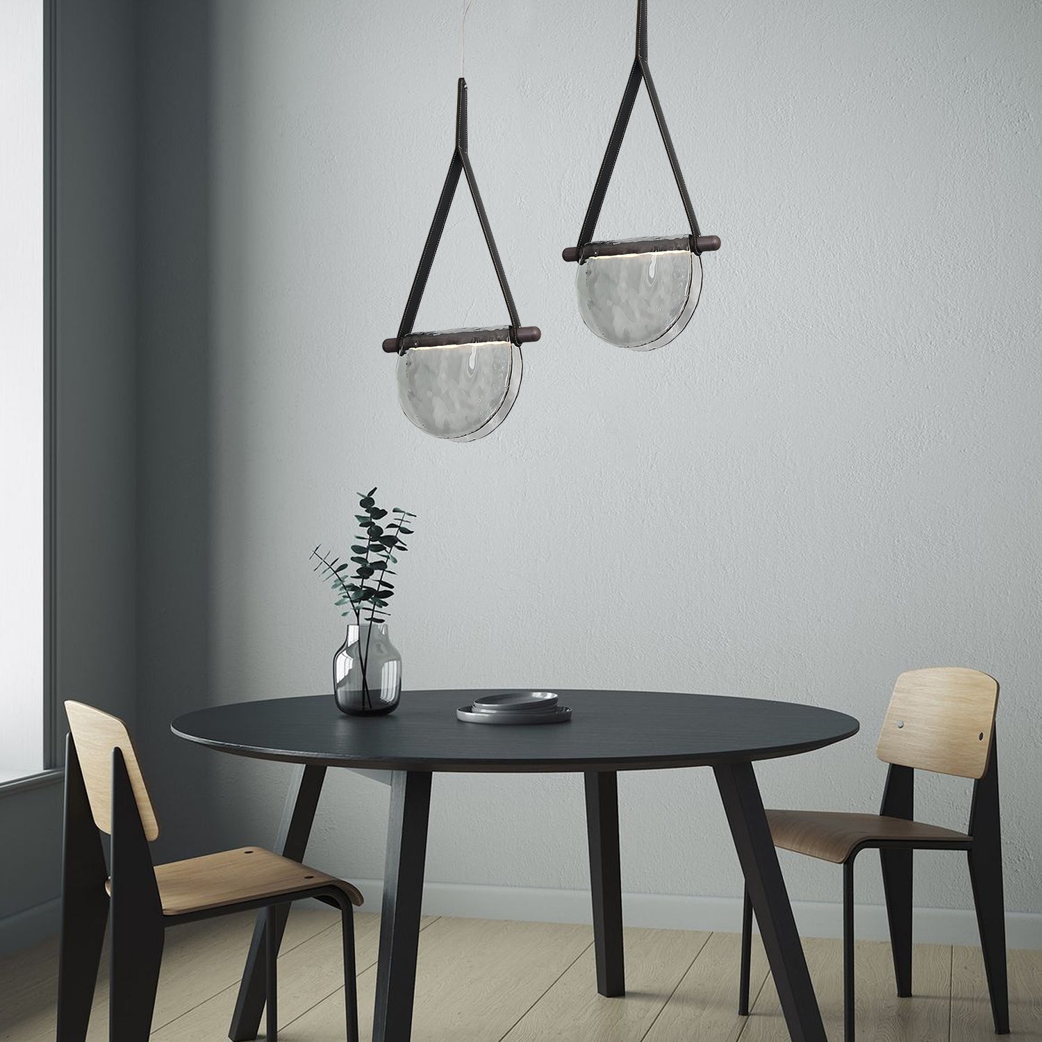 The Dali Leather Pendant Light features a unique combination of leather straps and a glass diffuser. The simple and modern structure allows light to pass through softly, creating a comfortable atmosphere. It is suitable for dining rooms, living spaces, or cafés. The materials are selected for durability and easy cleaning.