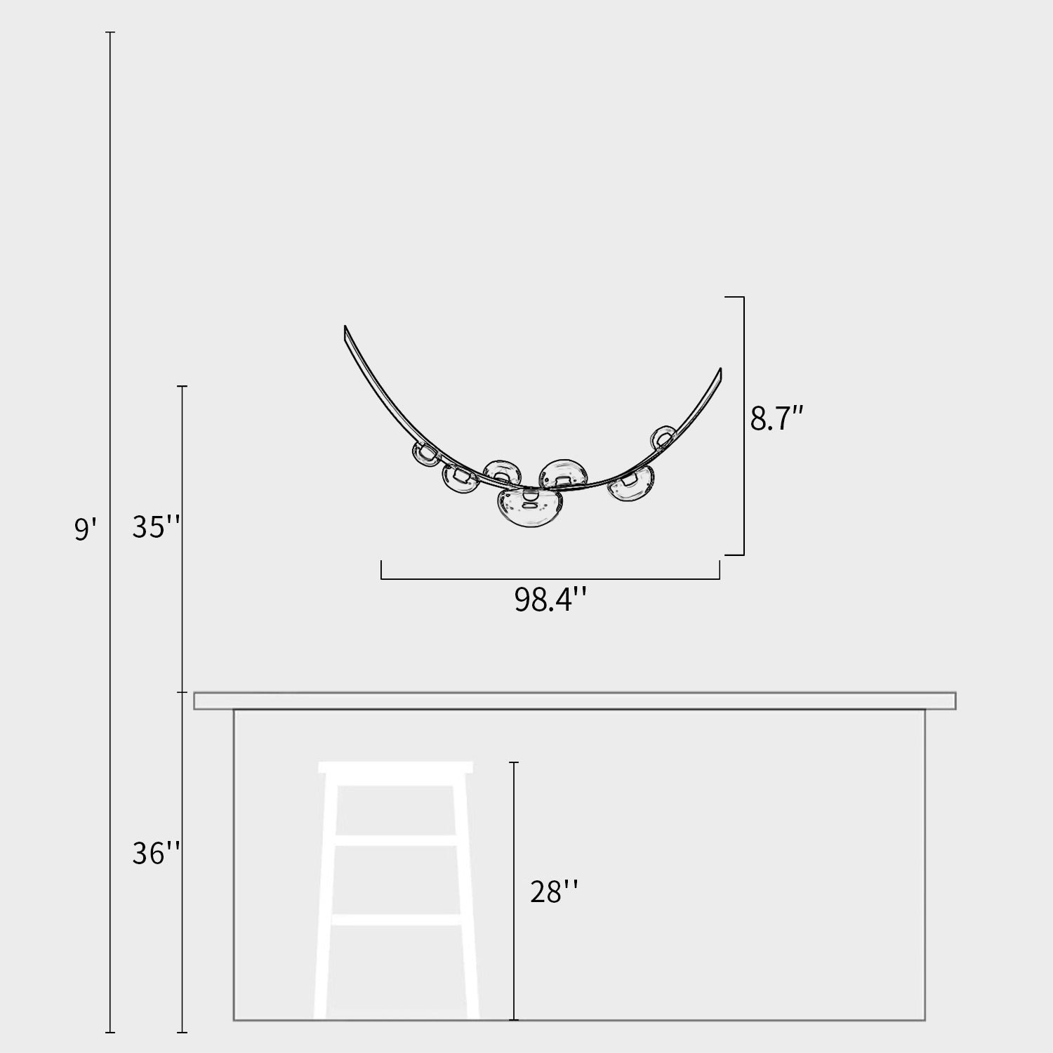 We provide 200 cm / 78.7 inches of hanging wire. It can be extended upon request.