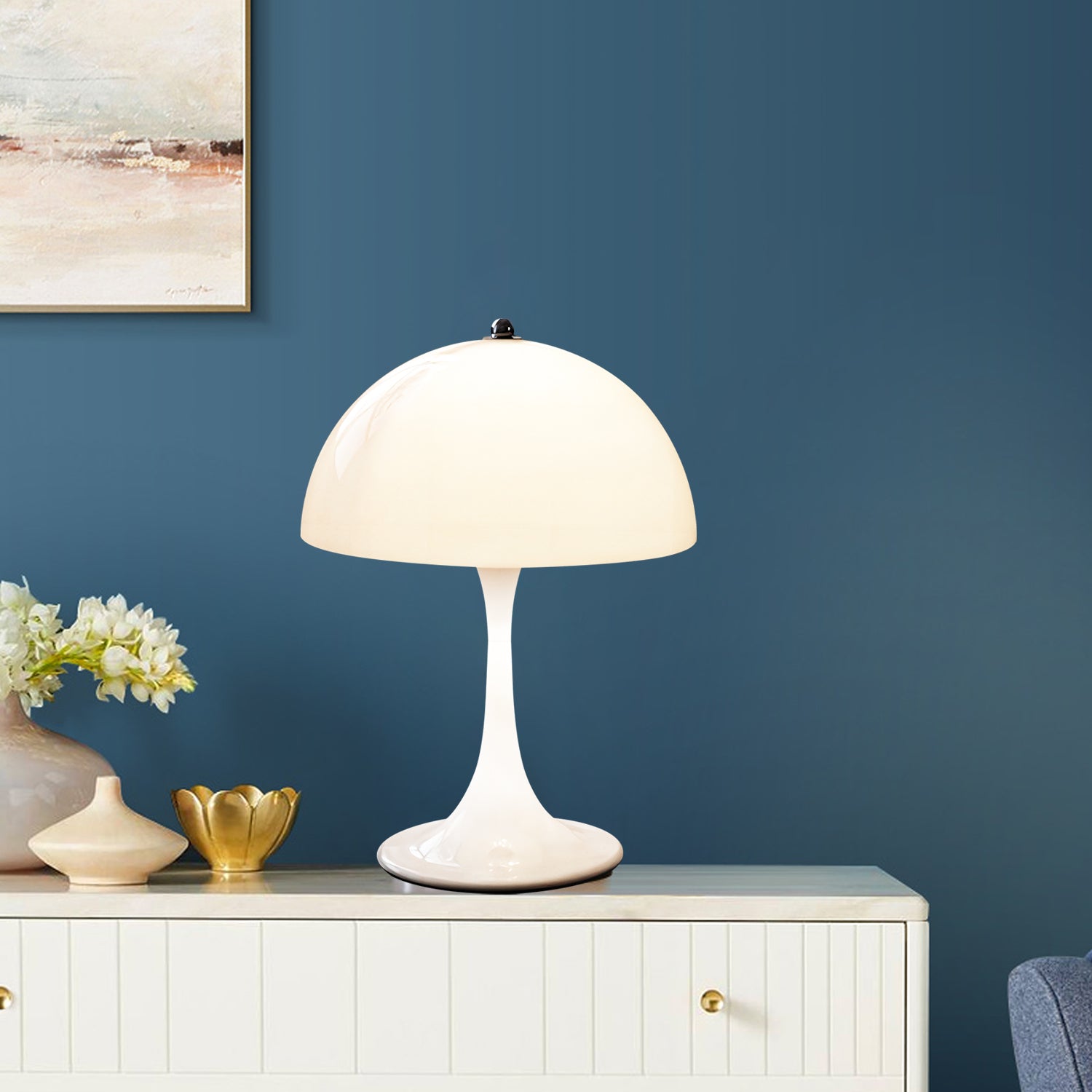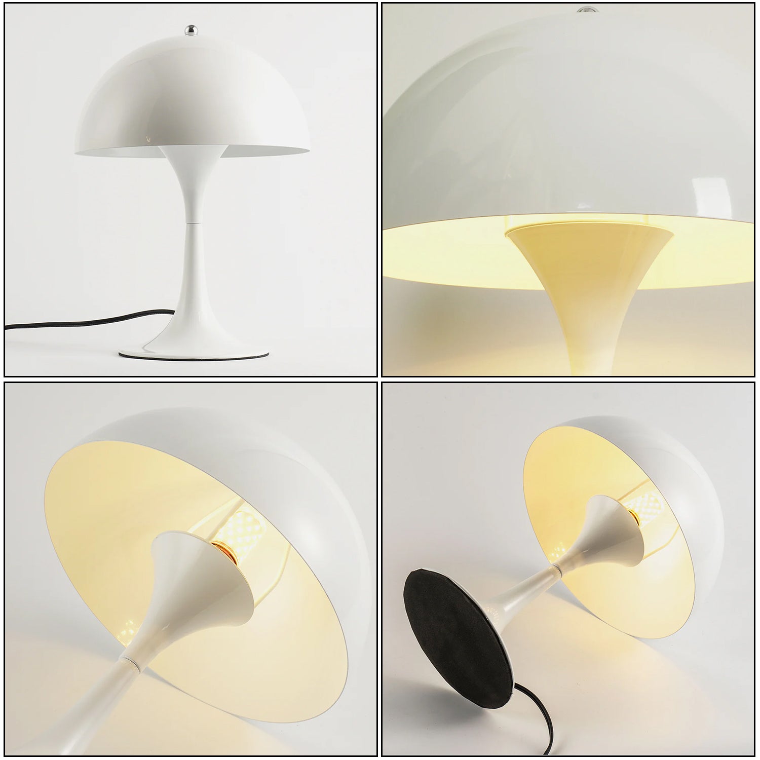 The Dome Mushroom Table Lamp features a smooth, evenly lit dome lampshade that enhances the lamp’s color with clarity. Its slender pole paired with a semicircular shade creates a visually pleasing balance, embodying understated classical elegance. The curved design emits a notably warm glow, while the charming mushroom form adds a decorative touch to any space.