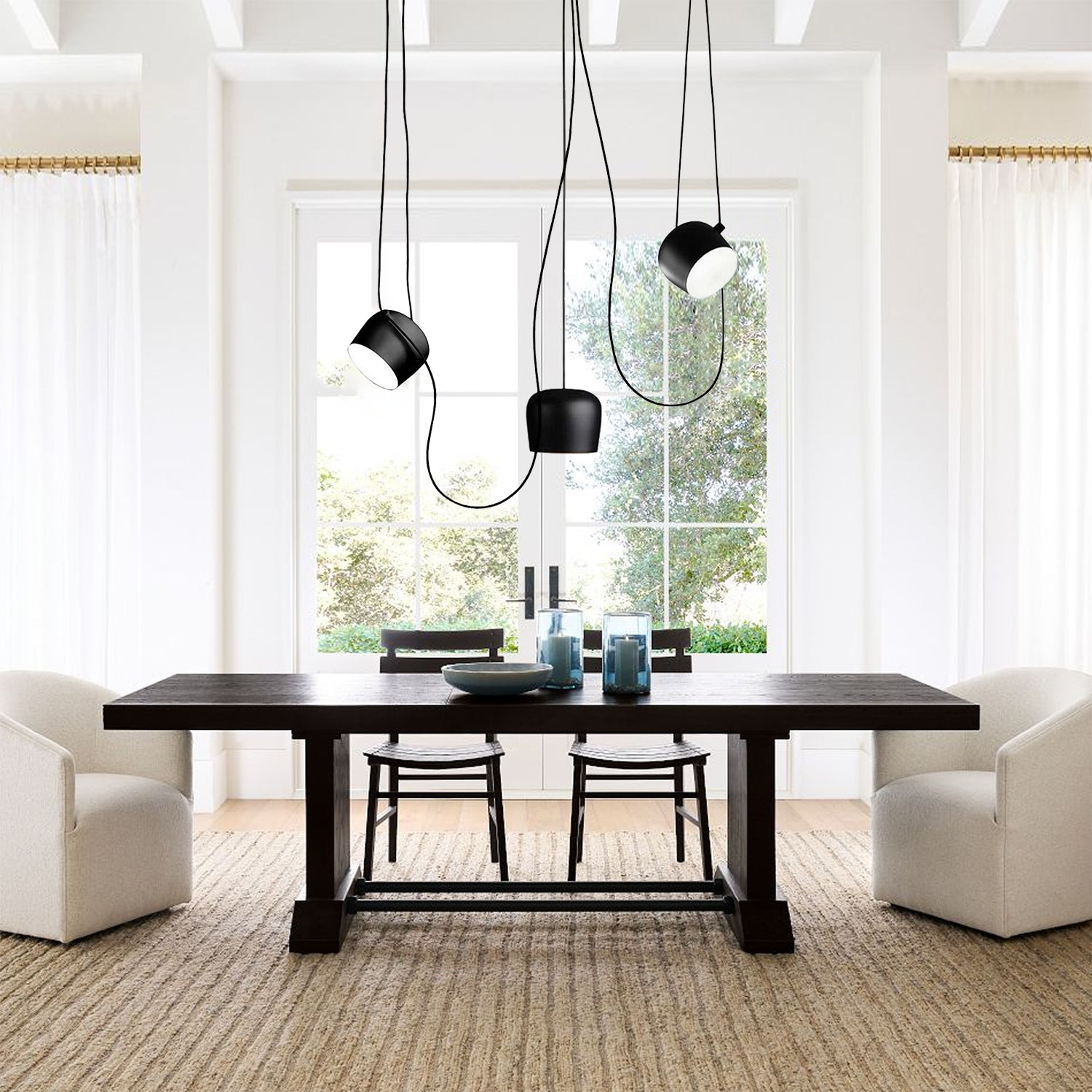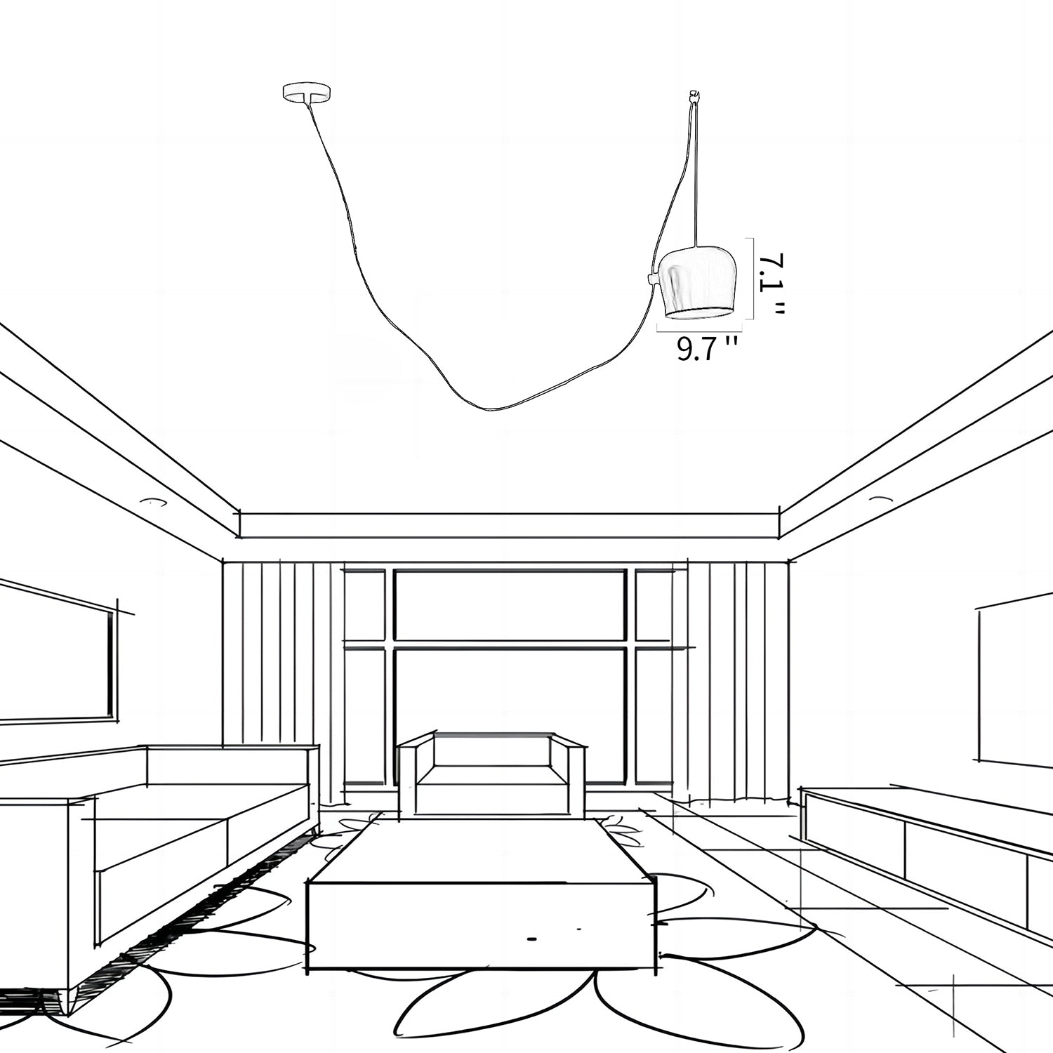 A Drum Pendant Lamp is a lamp with a drum-shaped shade that hangs from the ceiling. Its simple cylindrical design is versatile and suitable for a variety of spaces such as living rooms, dining rooms, bedrooms or offices. These lamps provide diffused light and generally create a warm and inviting atmosphere.