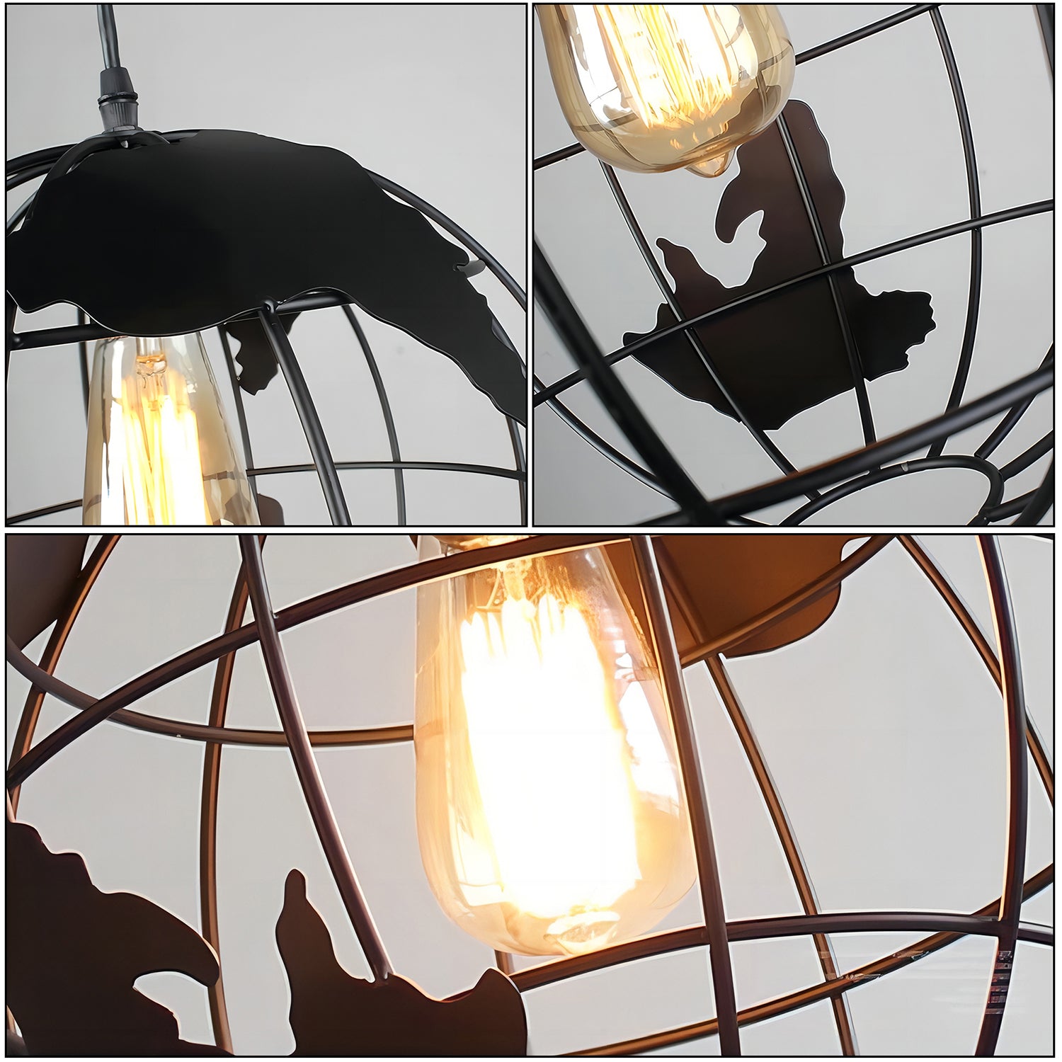 The Earth Globe Pendant Lamp presents a stunning perspective of our planet as seen from the moon, delicately suspended in space. Crafted with precision, its hollow iron frame defines the Earth's form, while the internal light source animates it with a fiery glow. This lamp merges artistic expression with practical lighting, serving as an elegant focal point that accentuates the Earth's contours through intricate textures and shadows. Perfect for those desiring a distinctive lighting fixture that unites creativity with refined craftsmanship.