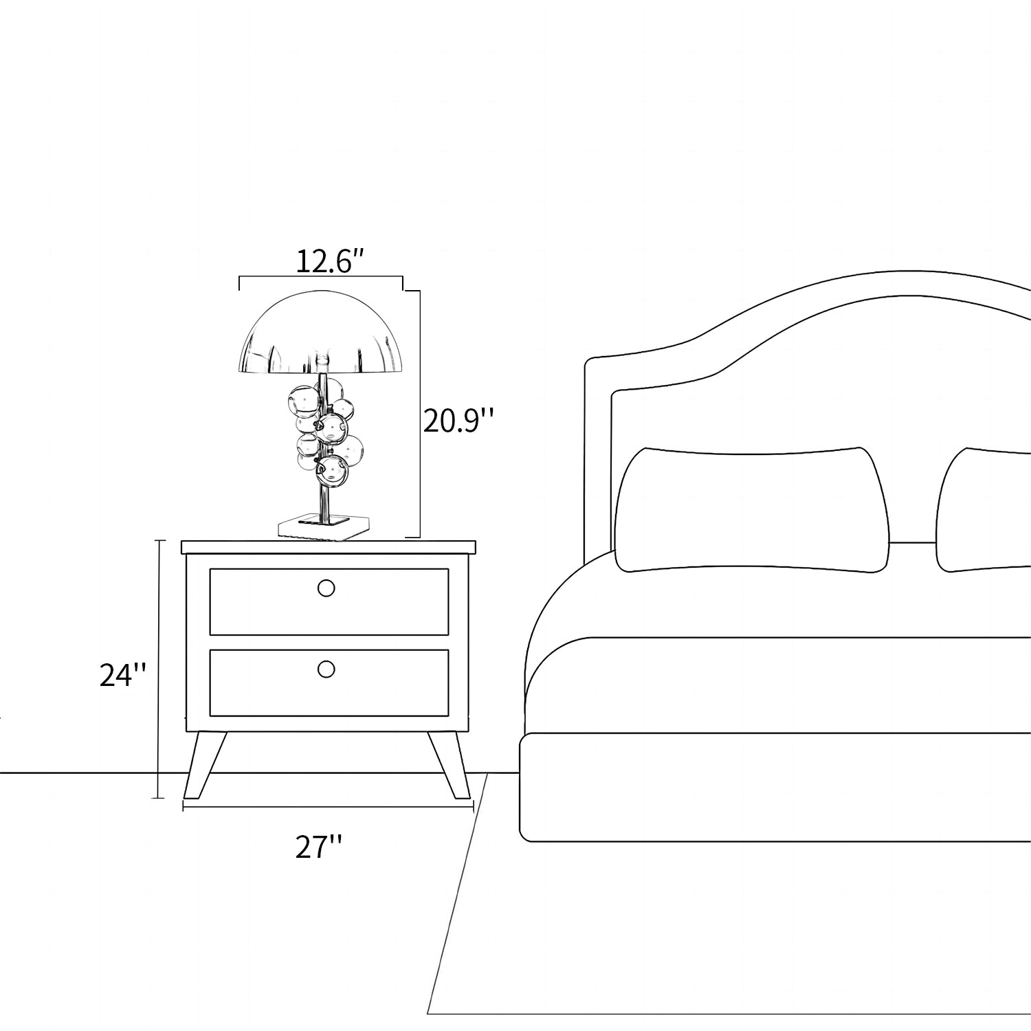 The Globo Glass Table Lamp features an acrylic sphere delicately suspended above a marble base. Its design allows light to refract around the lamp, creating a sparkling effect that enhances the ambiance. This piece combines artistic style with unique lighting to elevate any space.
