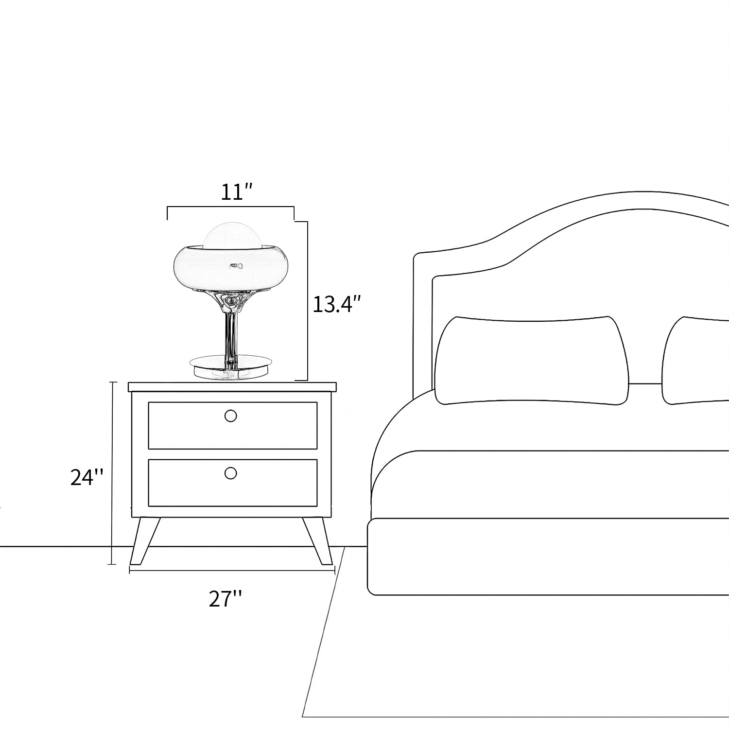 The Harvey Bauhaus Table Lamp showcases a chromed metal structure paired with brown glass and opal details. Its design, inspired by the shape of an egg tart, presents a smooth and inviting silhouette. This refined lamp provides a gentle, warm glow, making it a distinguished addition to any elegant interior setting.