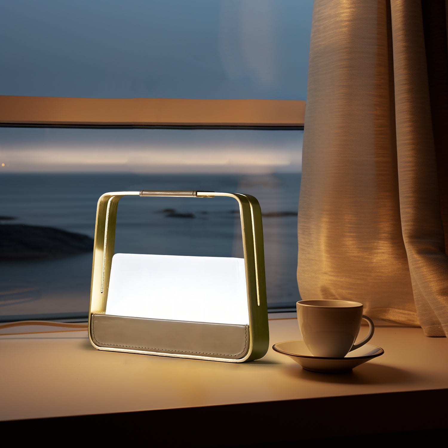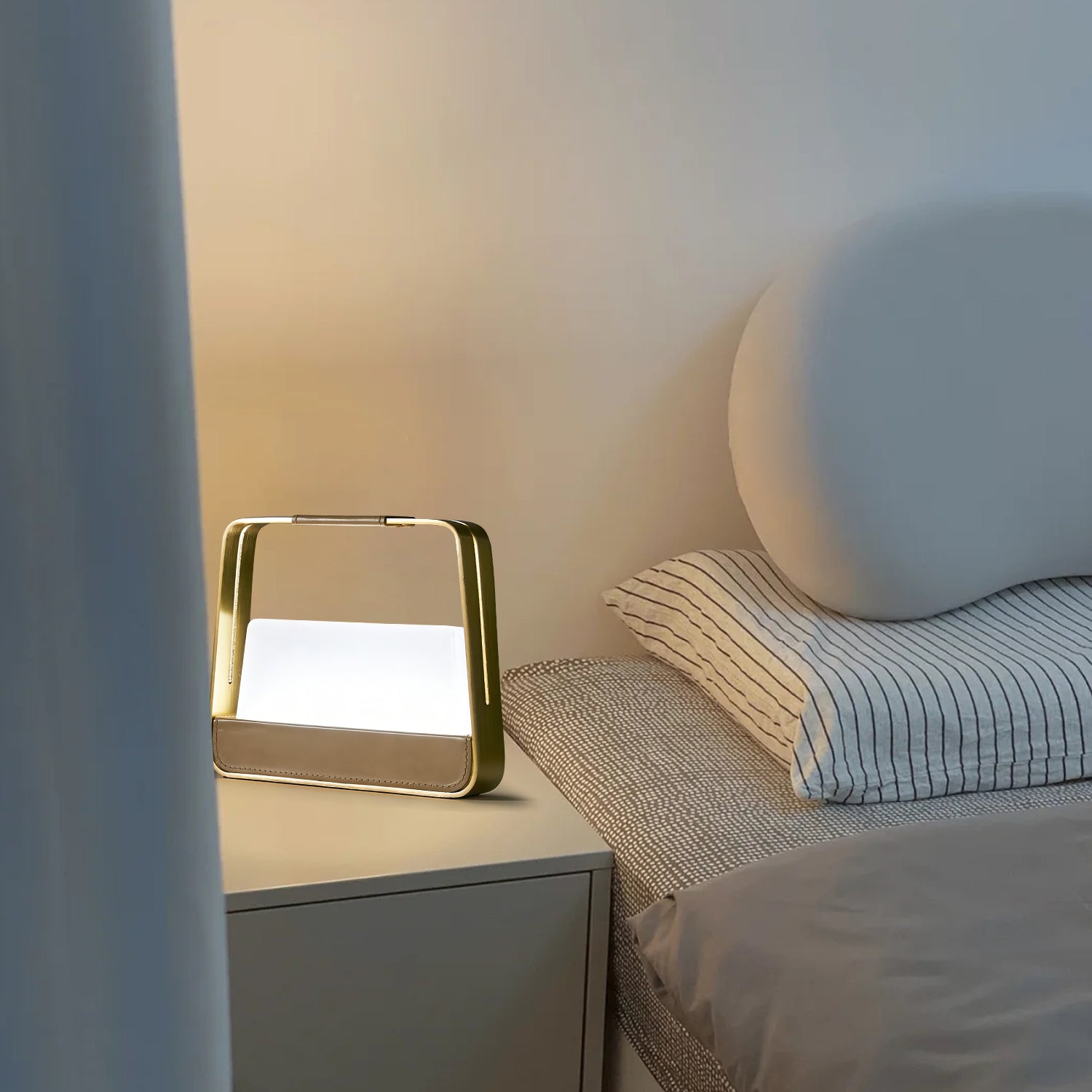 The Jacqueline Portable Table features a modern frame design with a built-in handle for easy movement. Its soft, diffused light creates a comfortable atmosphere for desks, bedside tables, or small spaces. The lamp includes a stable base and a smooth surface finish that fits well with contemporary interiors. Designed for everyday use, it provides simple and practical lighting where needed.