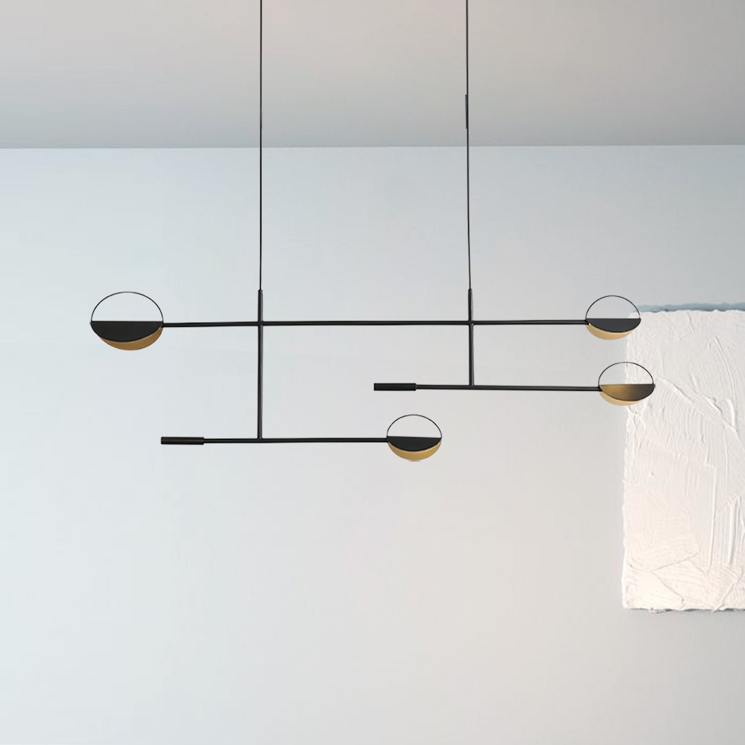 The Leaves Pendant Lamp features delicate mobile sculptures suspended from a rope or pole. This distinctive pendant combines sculptural artistry with functionality, offering an elegant lampshade that swivels sideways to direct light precisely where needed. Its refined design adds a sophisticated ambiance, making it an ideal centerpiece above dining tables to elevate the space with a subtle sense of luxury.