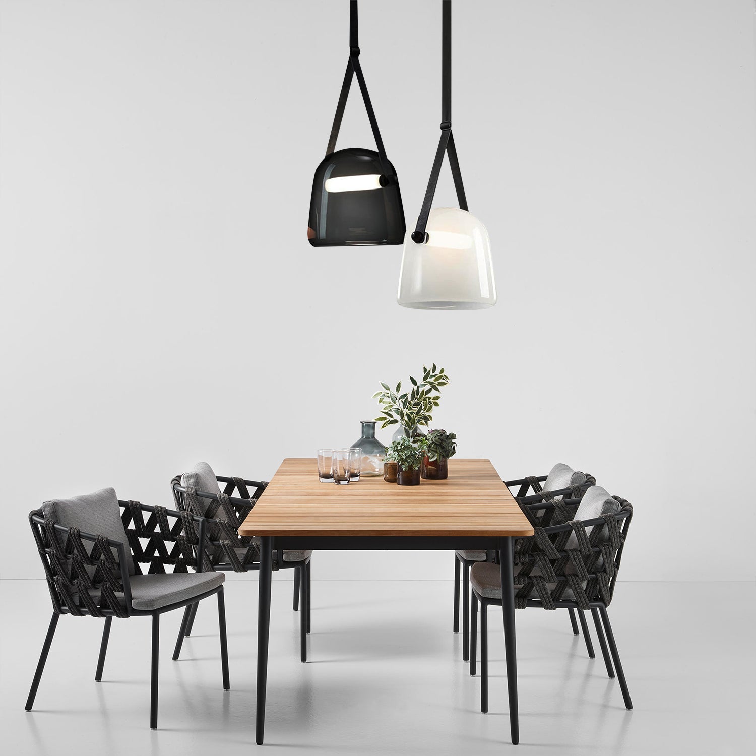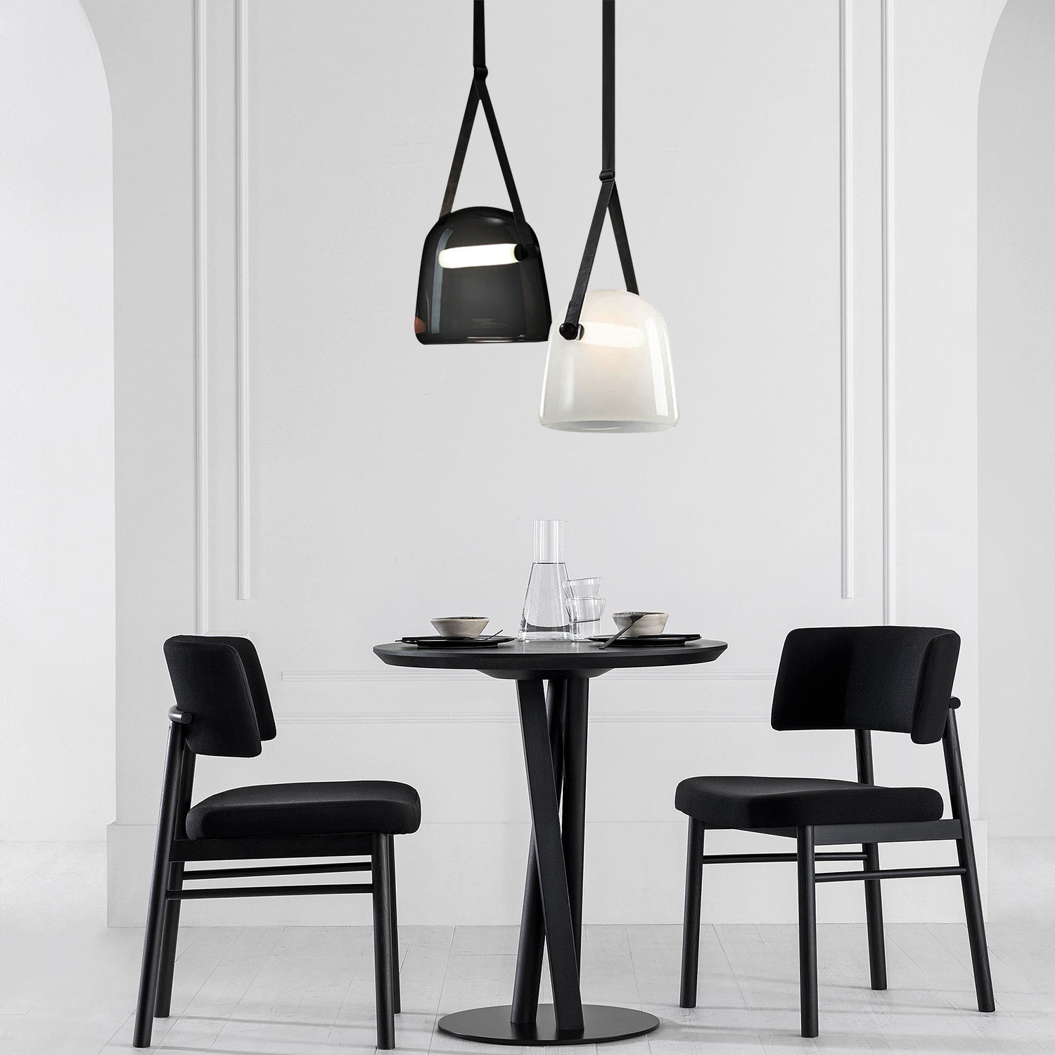 The Luma Glass Pendant Light showcases a simple glass shade complemented by a streamlined belt, designed by an Italian artisan to add sophisticated charm to any environment.