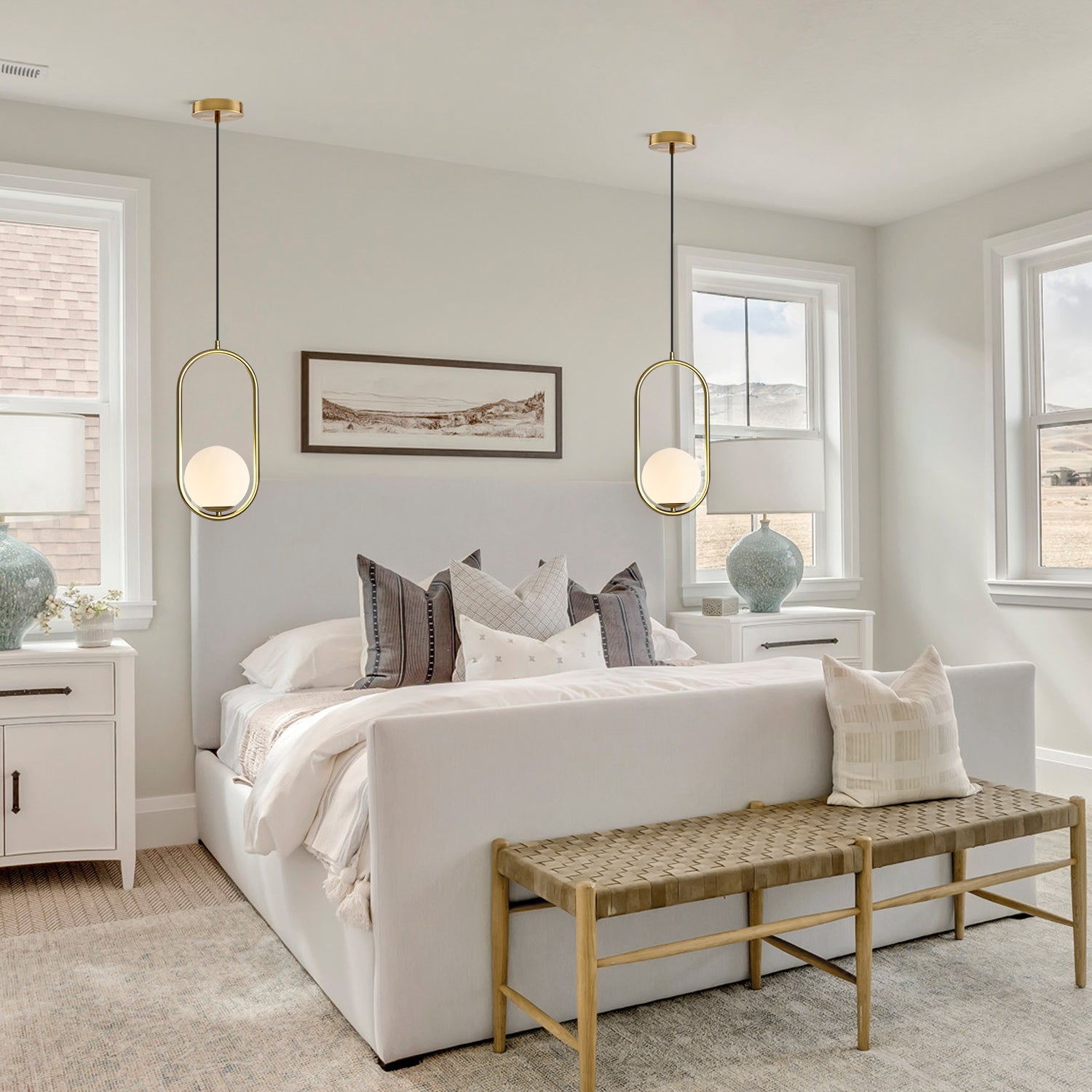 The Mila Glass Pendant Lamp, also known as the Saturn Pendant Lamp, draws inspiration from the solar system’s eight planets, with its geometric glass shade evoking the image of Saturn. Crafted from hand-blown artisan glass, its softly curved design highlights refined geometry. The lamp’s spherical shade emits a clean, sophisticated glow, suspended gracefully within a frame of exquisite metals.
