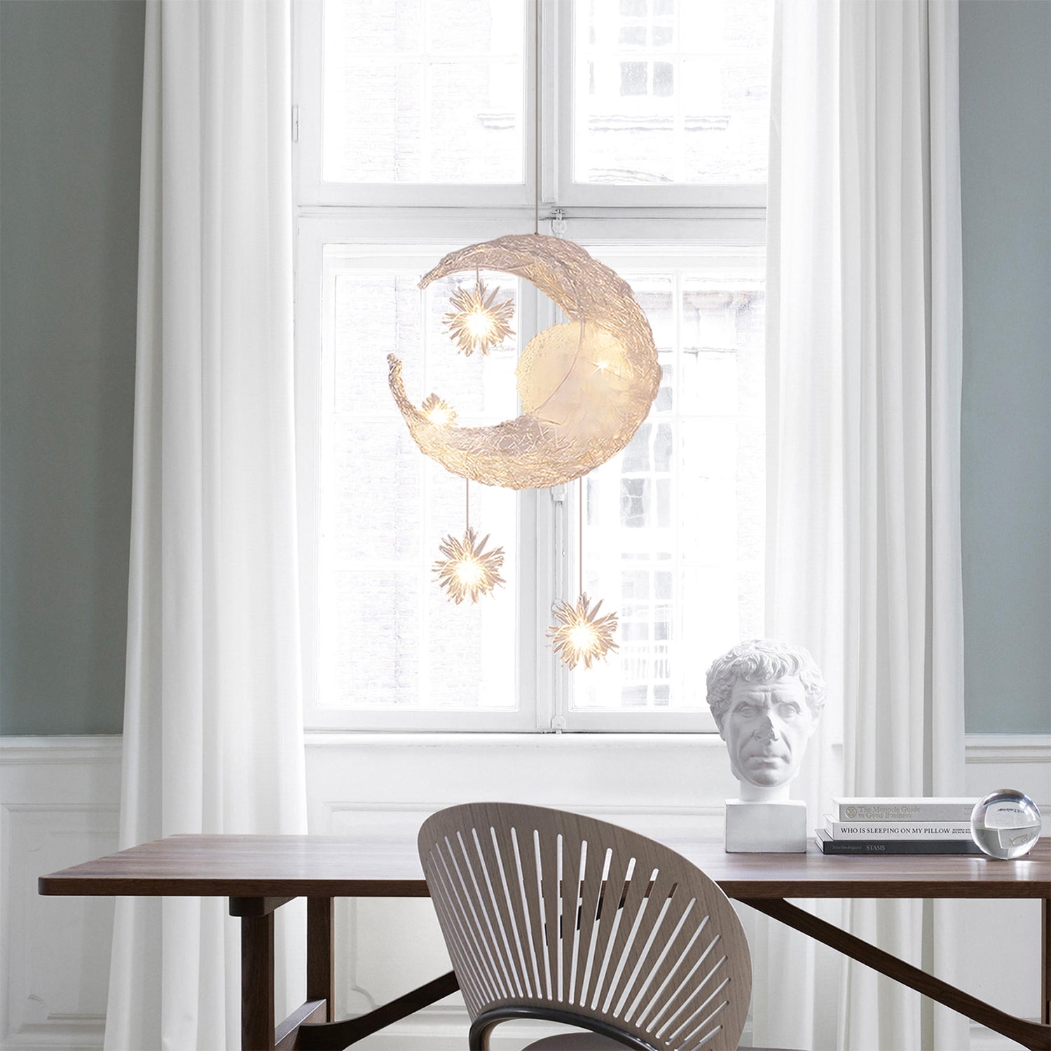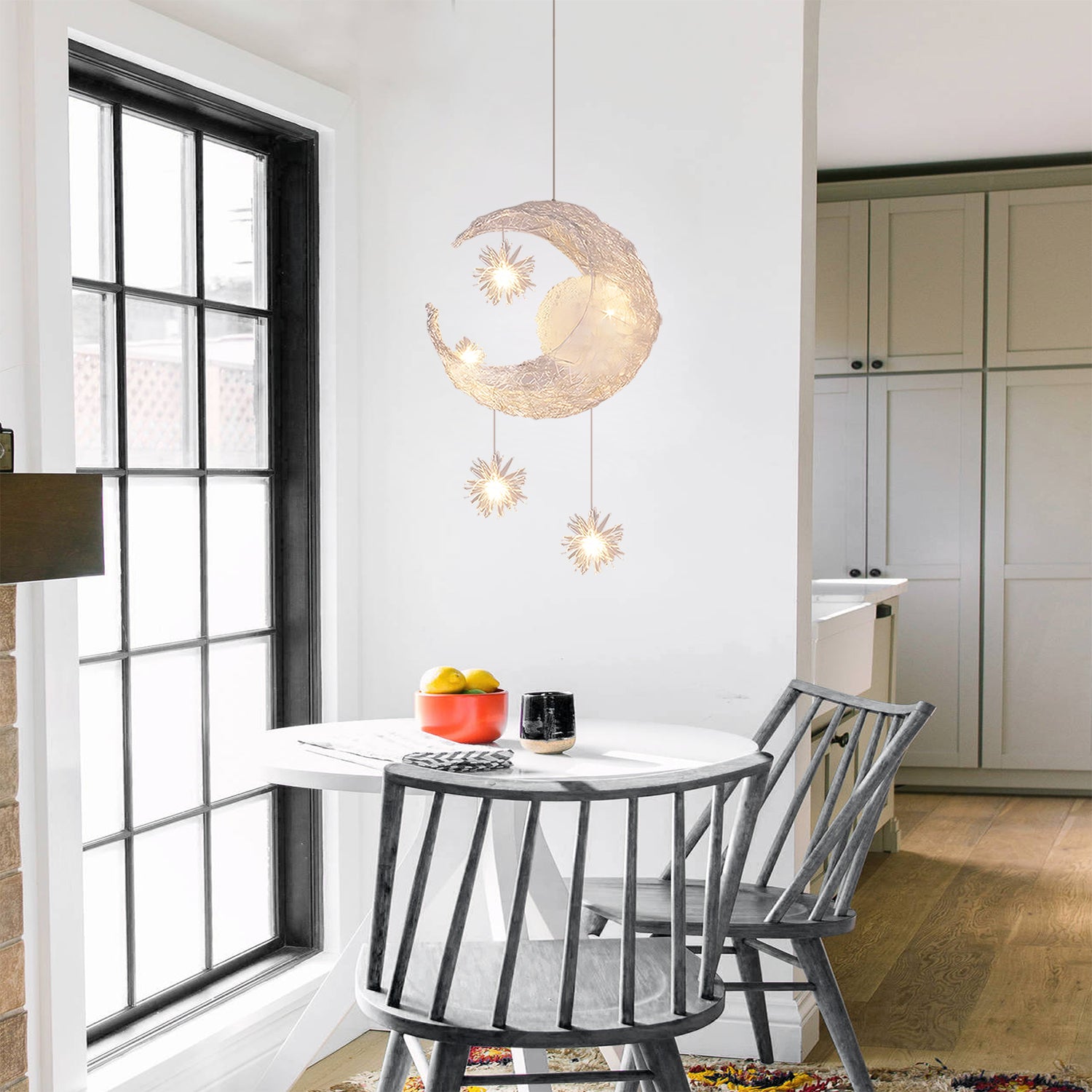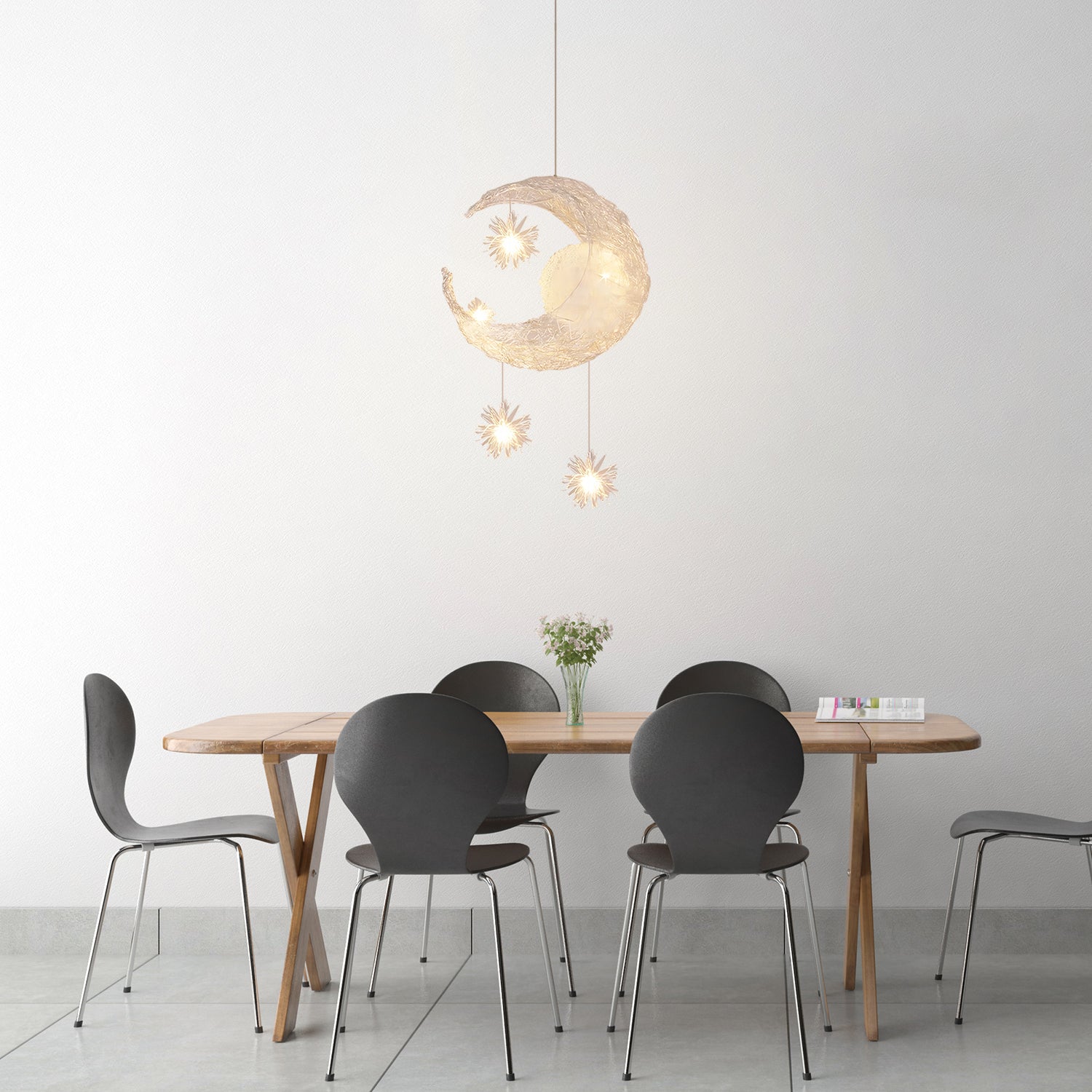 The Moon Star Pendant, fashioned to resemble the moon and stars, captures the essence of a surreal and enchanting night sky.