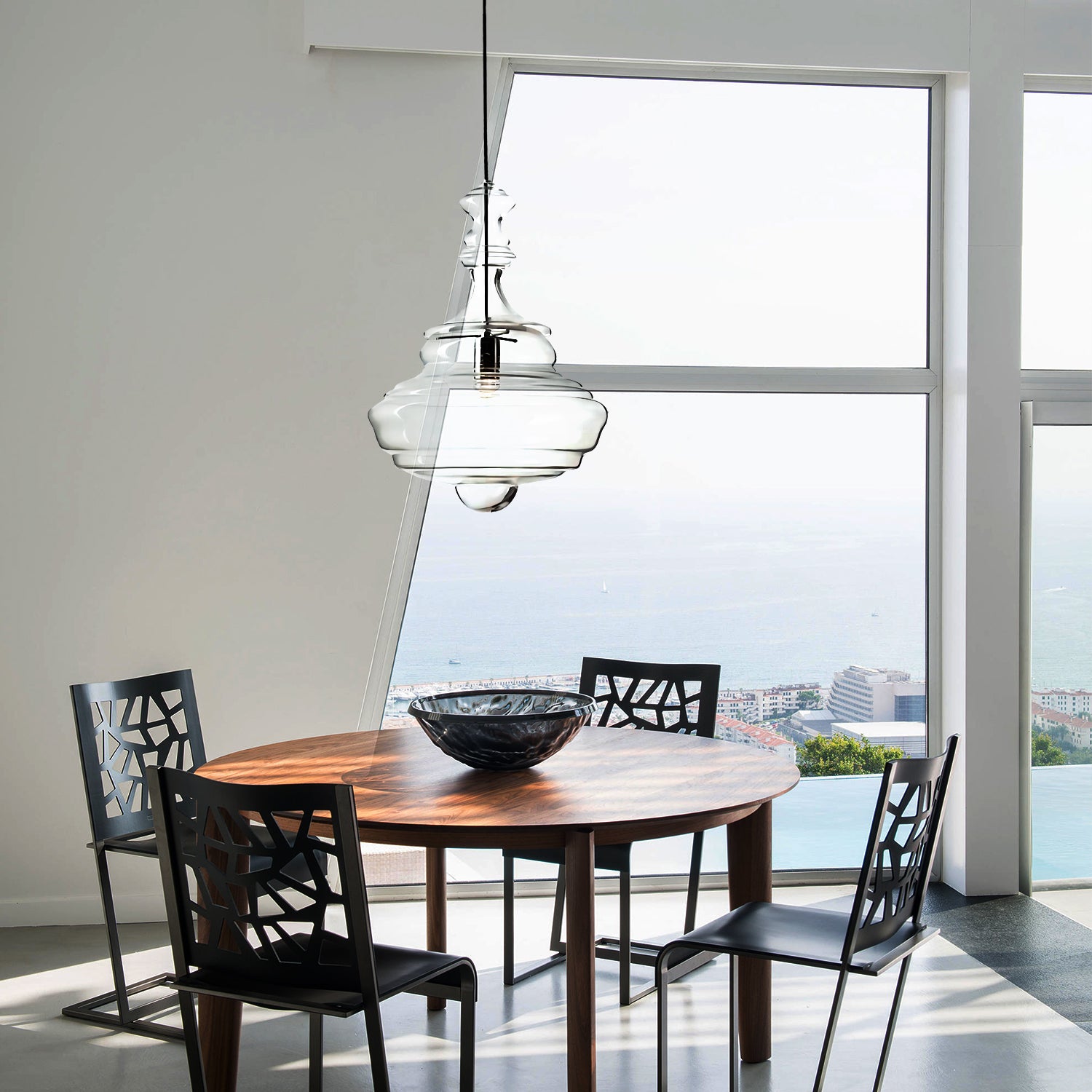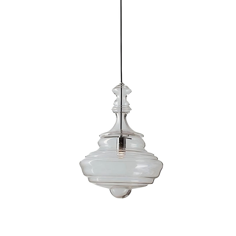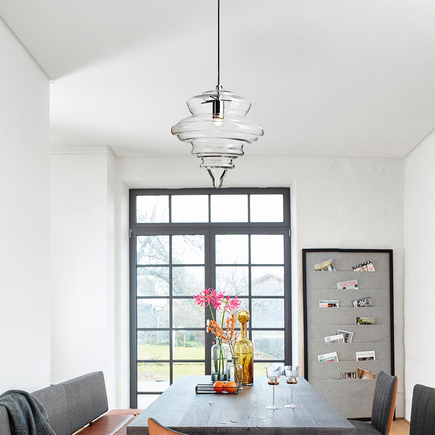 The Neverending Glory Glass Pendant features a layered glass shade inspired by classic chandelier forms. Its transparent structure allows soft light to shine through, creating a gentle and balanced atmosphere. Suitable for dining rooms, living spaces, or hallways, this pendant adds a refined decorative touch to modern and traditional interiors.