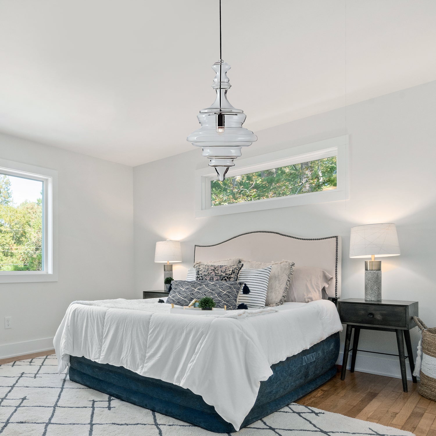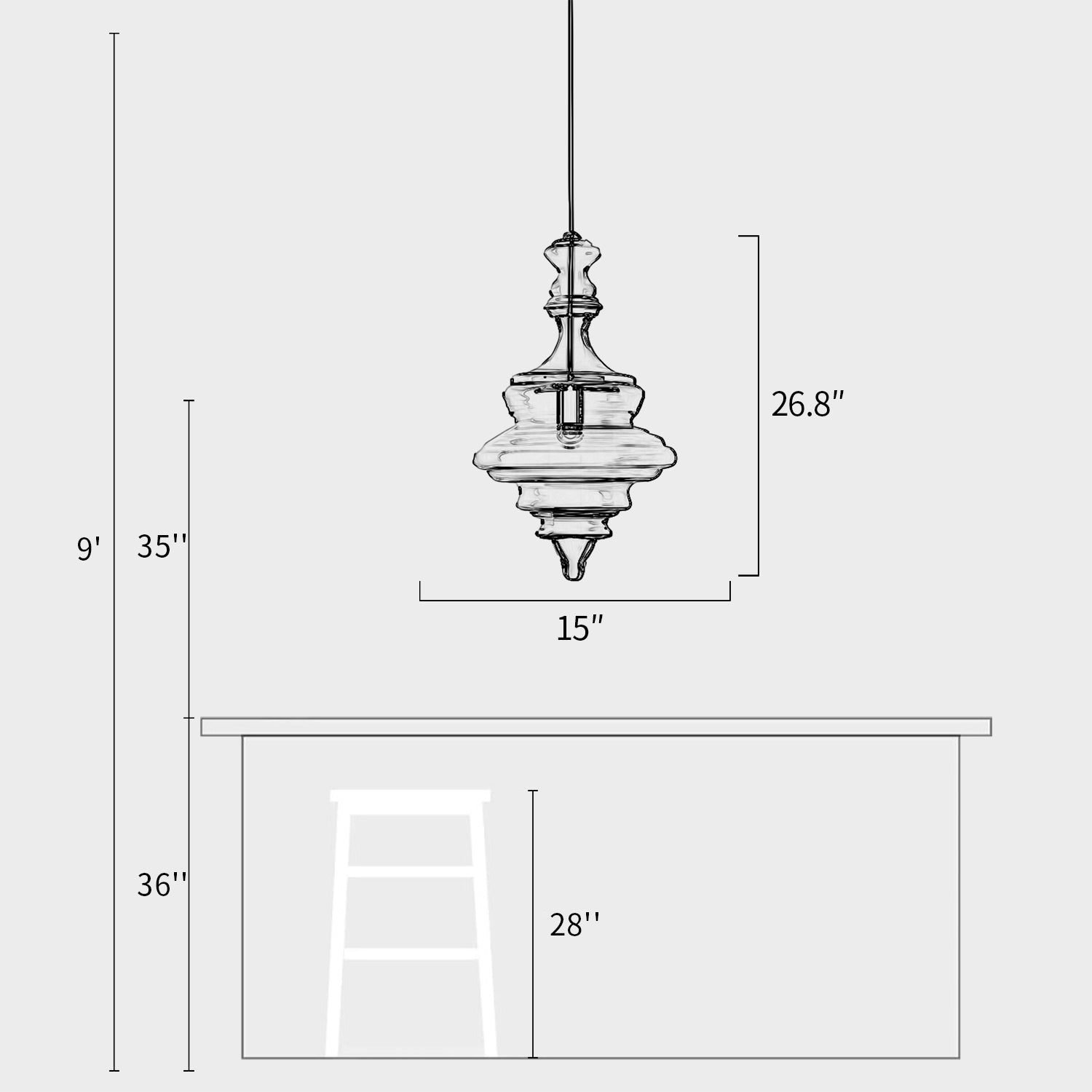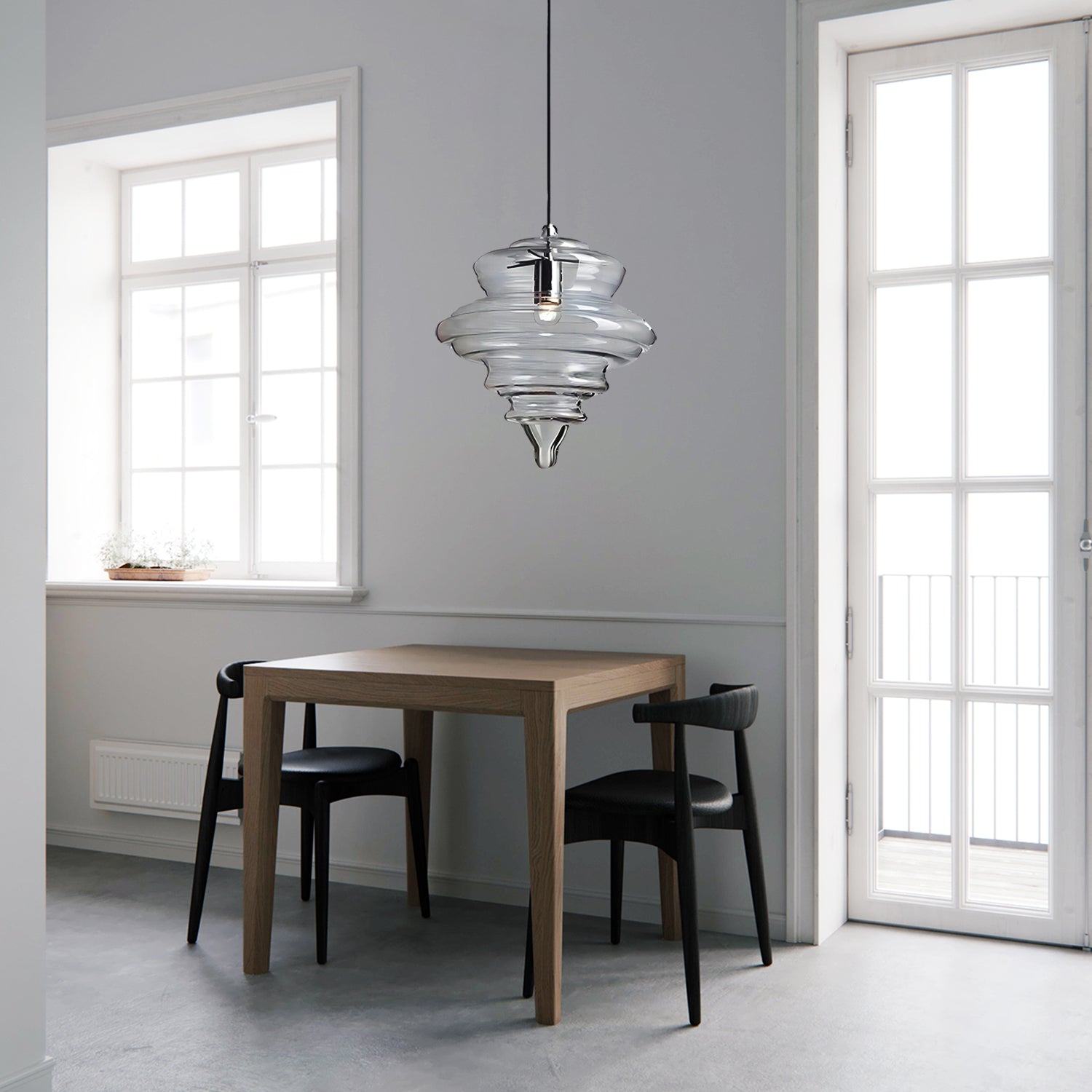 The Neverending Glory Glass Pendant features a layered glass shade inspired by classic chandelier forms. Its transparent structure allows soft light to shine through, creating a gentle and balanced atmosphere. Suitable for dining rooms, living spaces, or hallways, this pendant adds a refined decorative touch to modern and traditional interiors.