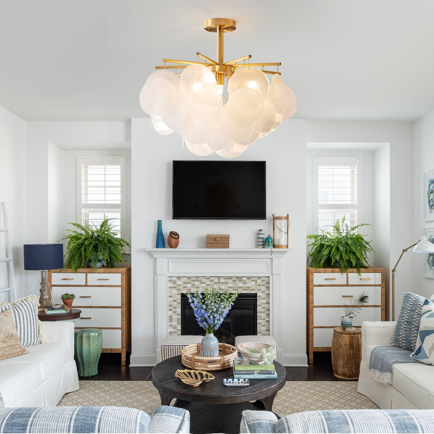 Note: Each piece of translucent glass is handmade, so surface ripples and crystal lines vary slightly from piece to piece, giving the chandelier a unique and natural appearance.