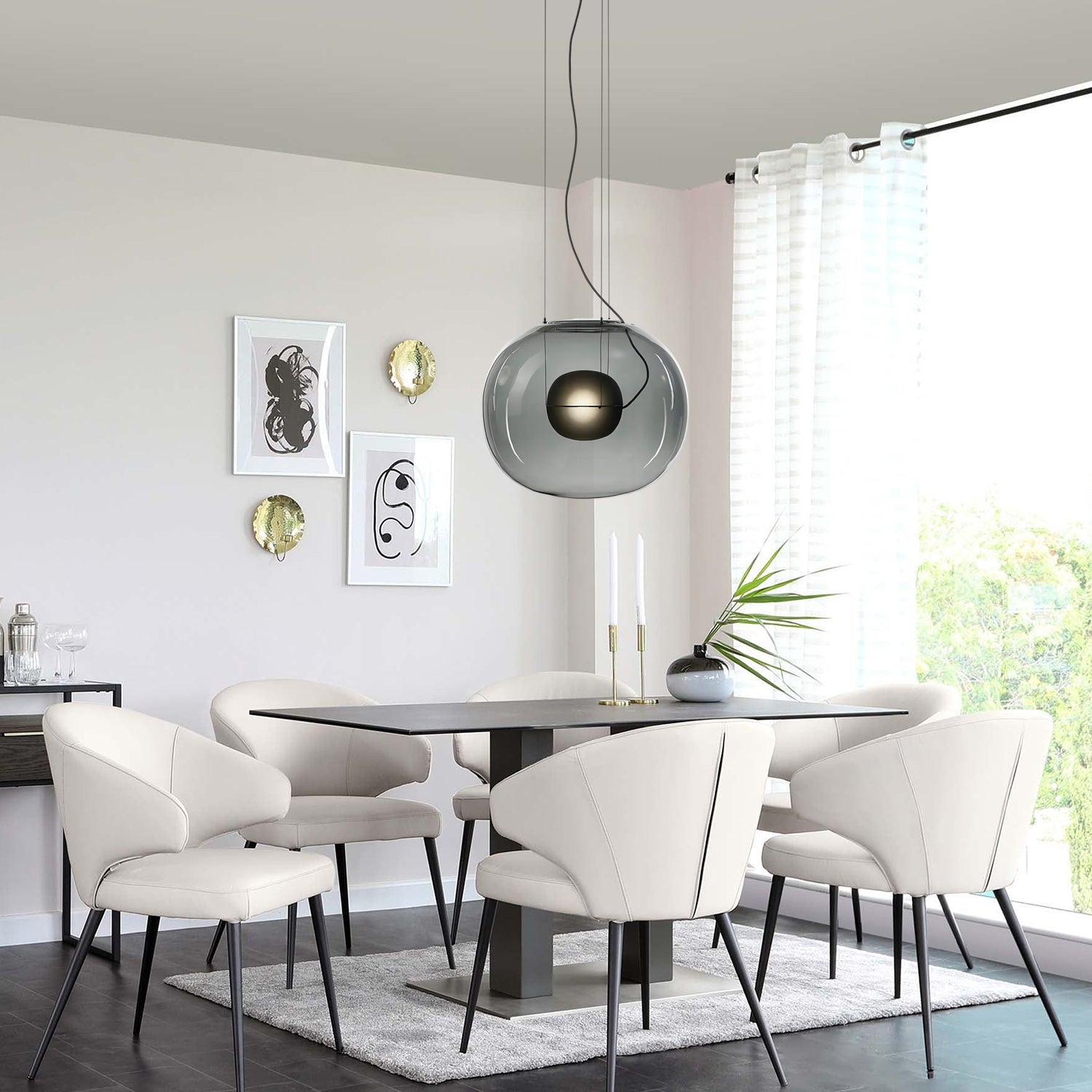 The Orb Glass Pendant Light features a matte-finished inner glass sphere surrounded by a larger clear glass orb. The smaller sphere provides soft illumination, while the outer layer offers protection and creates a layered visual effect. The design uses simple geometric forms, making it suitable for various interior settings.