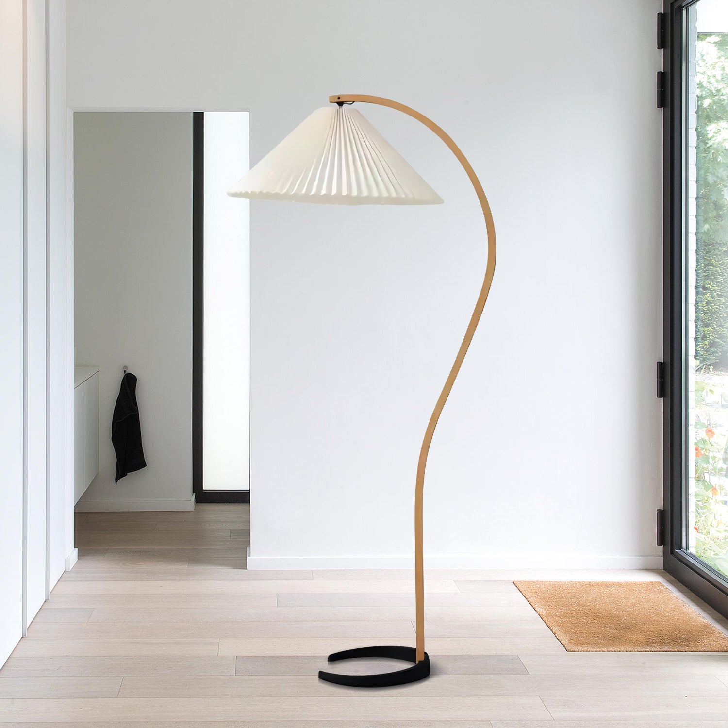 Pleated Floor Lamp, a classic from the Danish designer. The curved wood lamp ridge has the elegant curve of the swan neck, which is connected to the crescent-shaped cast iron base. With a pleated lampshade, it exudes an elegant and retro temperament, bringing a pure and beautiful artistic aesthetic feeling, which is perfectly integrated into the entire space. The workmanship is very delicate, and it feels good when placed at home.