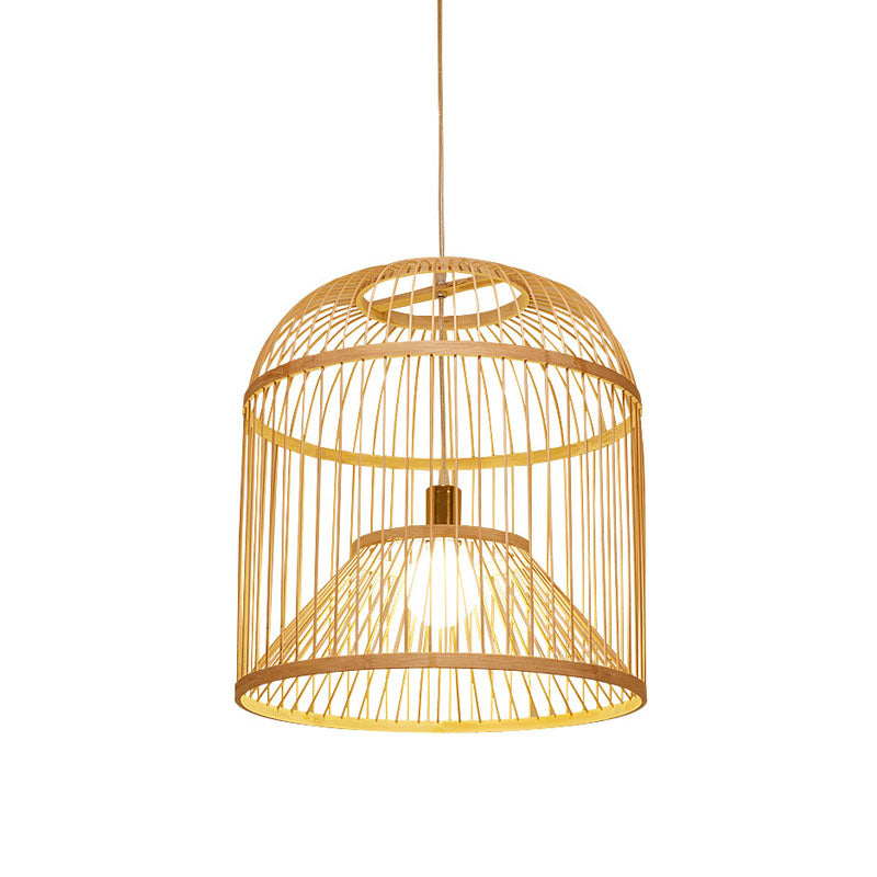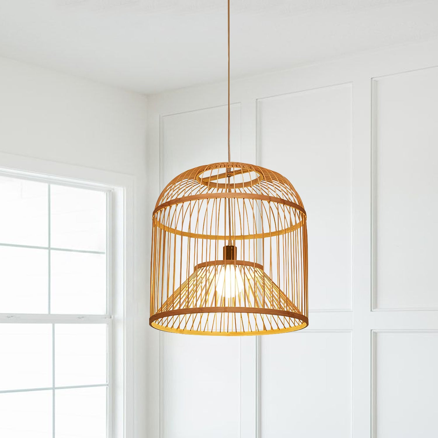 This pendant light is crafted from hand-woven rattan, highlighting its natural texture and warm tones. Supported by a durable metal frame, it combines organic material with practical function. The design allows light to filter gently through the weave, creating a soft and inviting atmosphere. Suitable for spaces such as dining areas, living rooms, or bedrooms.