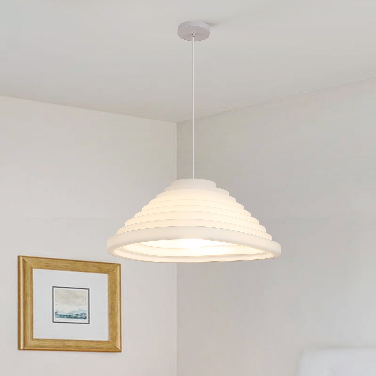 The Rice Field Wave Pendant features a layered design inspired by the curves of terraced fields. Made from durable materials with a soft white finish, it provides a gentle, even light suitable for dining rooms, living spaces, or offices. Its modern form blends functionality with a calm aesthetic, creating a comfortable atmosphere without glare.