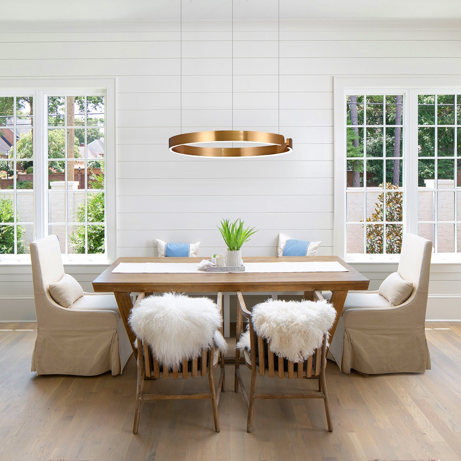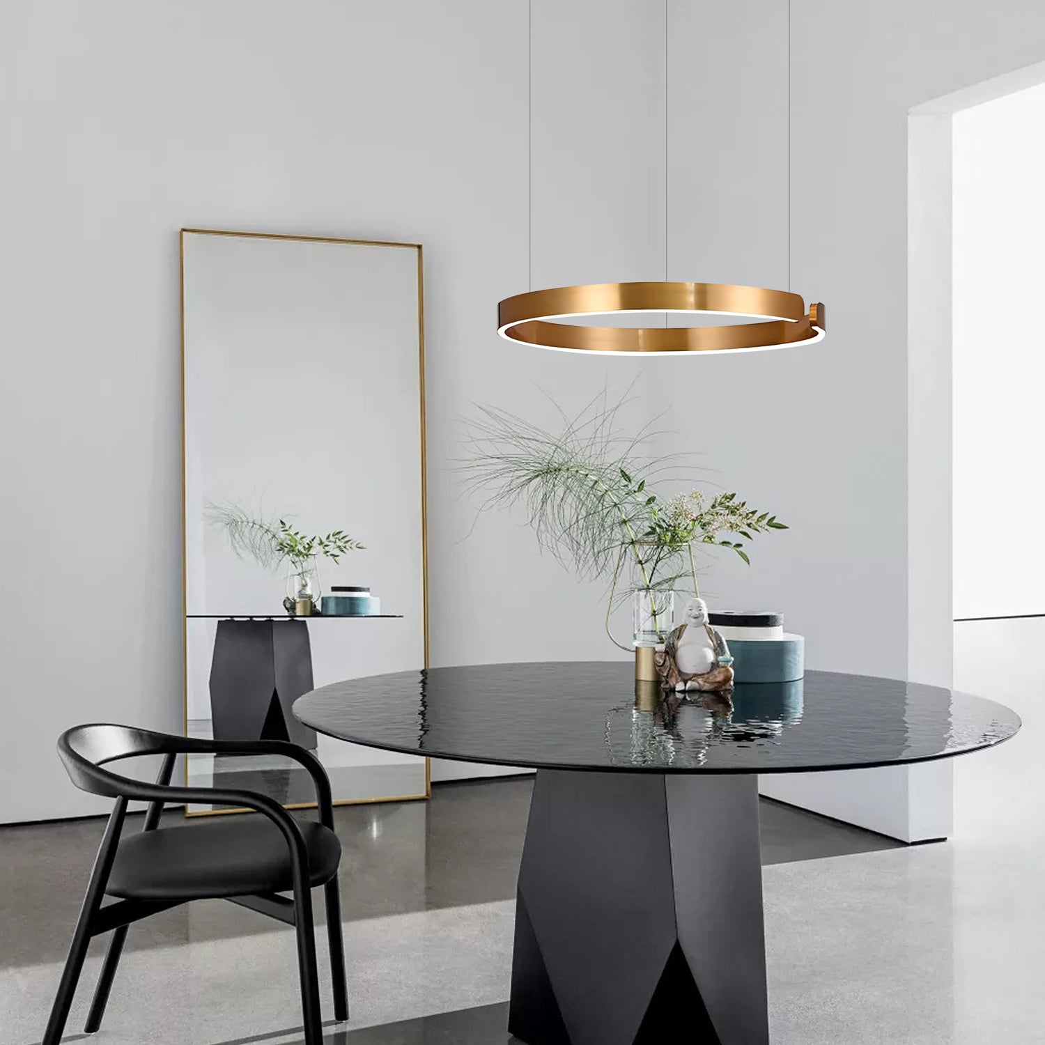 The Ring Pendant Lamp is a circular LED hanging light featuring an adjustable height mechanism. Its advanced reel system allows precise control, enabling you to set and maintain the lamp’s position at any preferred elevation with ease.