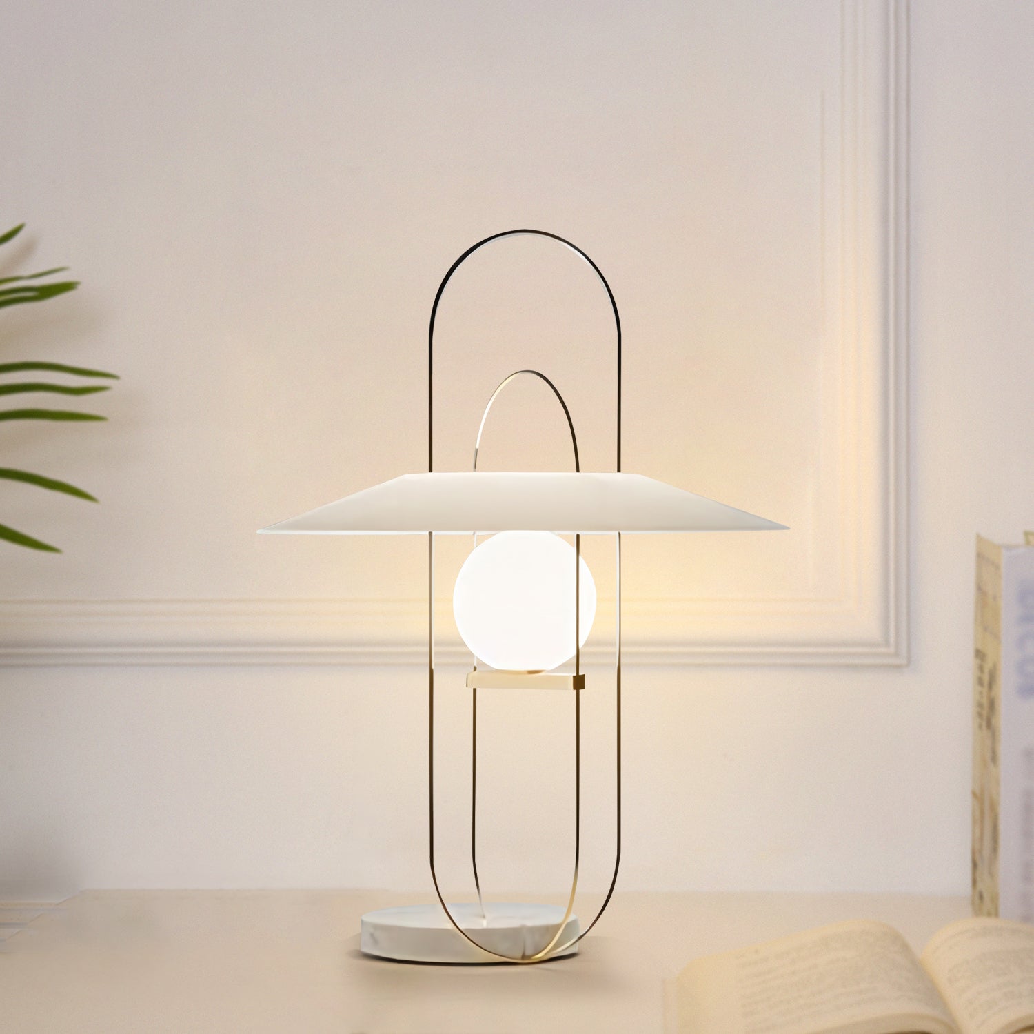 The Setareh Globe Table Lamp features a balanced design with a round glass shade and a slim metal frame. Its open structure allows light to diffuse softly, creating a calm and pleasant ambiance. Supported by a marble base, this lamp is suitable for bedrooms, living rooms, or offices, adding a simple decorative accent to modern interiors.