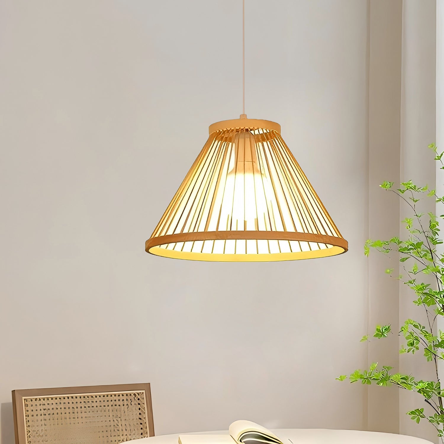 The Street Pendant Light is made from natural bamboo and designed for outdoor use. Its woven structure highlights the material’s natural texture and allows light to pass through softly, creating a comfortable illumination for patios, gardens, or covered walkways. The design combines functional durability with a style influenced by traditional Asian aesthetics.