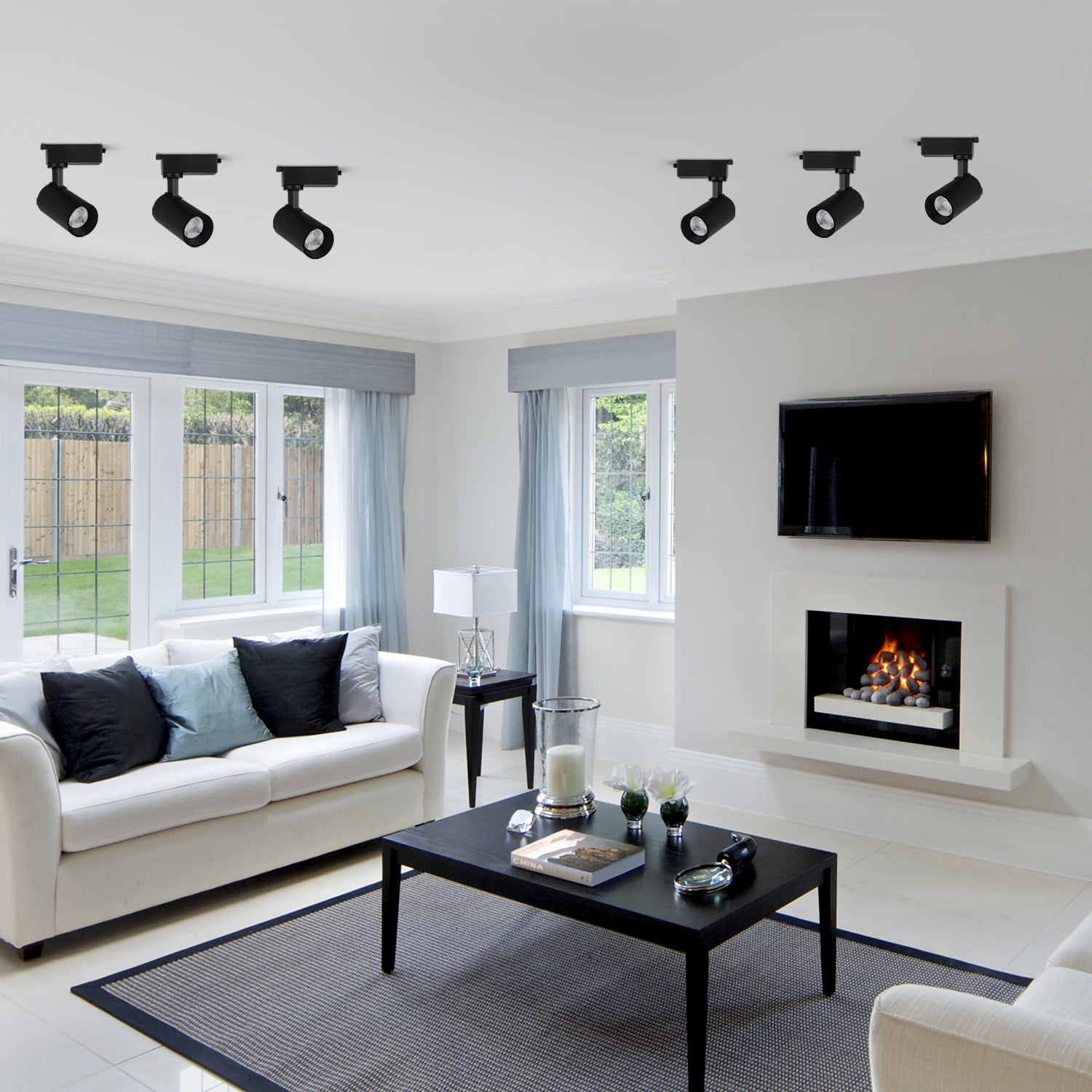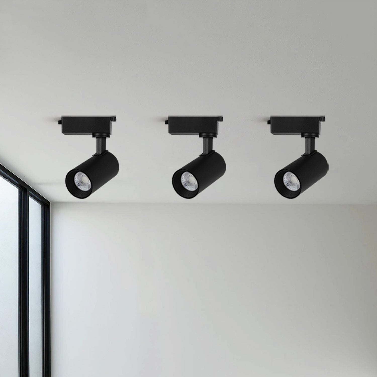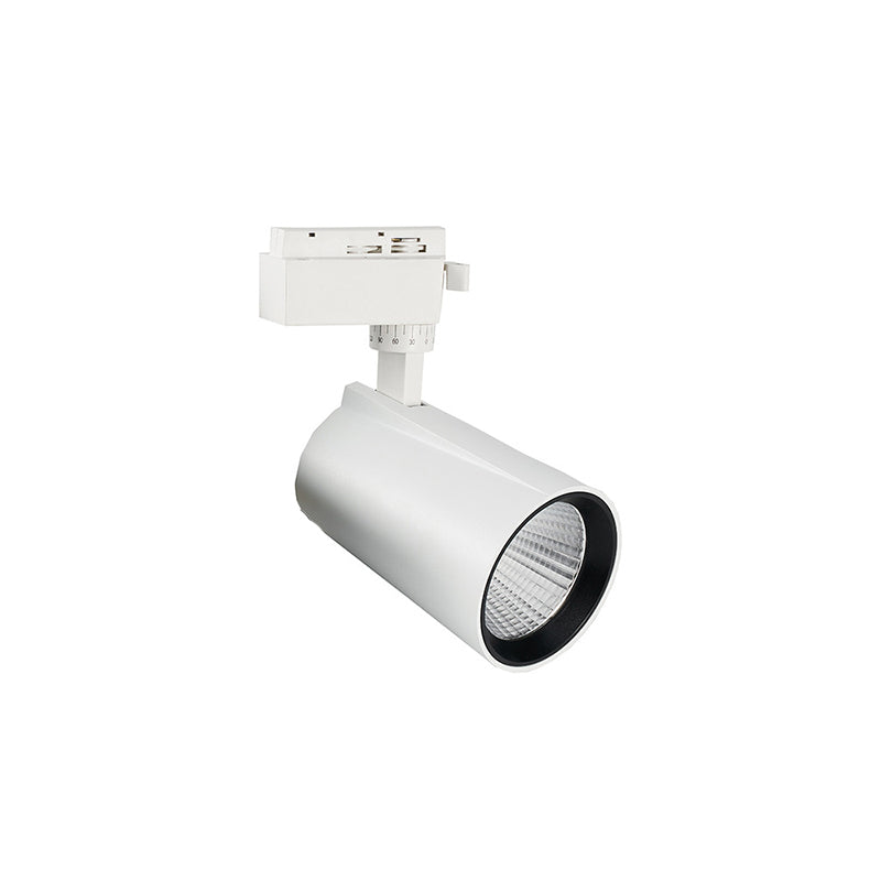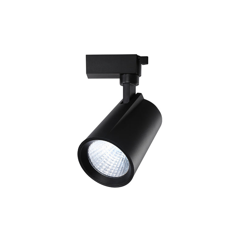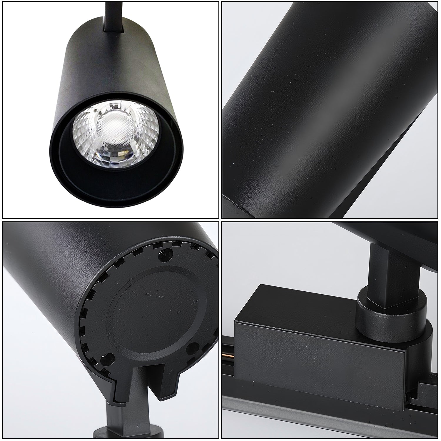 The Track Spotlight is a lighting fixture designed for installation on standard track lighting systems. It features an adjustable head that can be rotated to direct light toward specific areas.