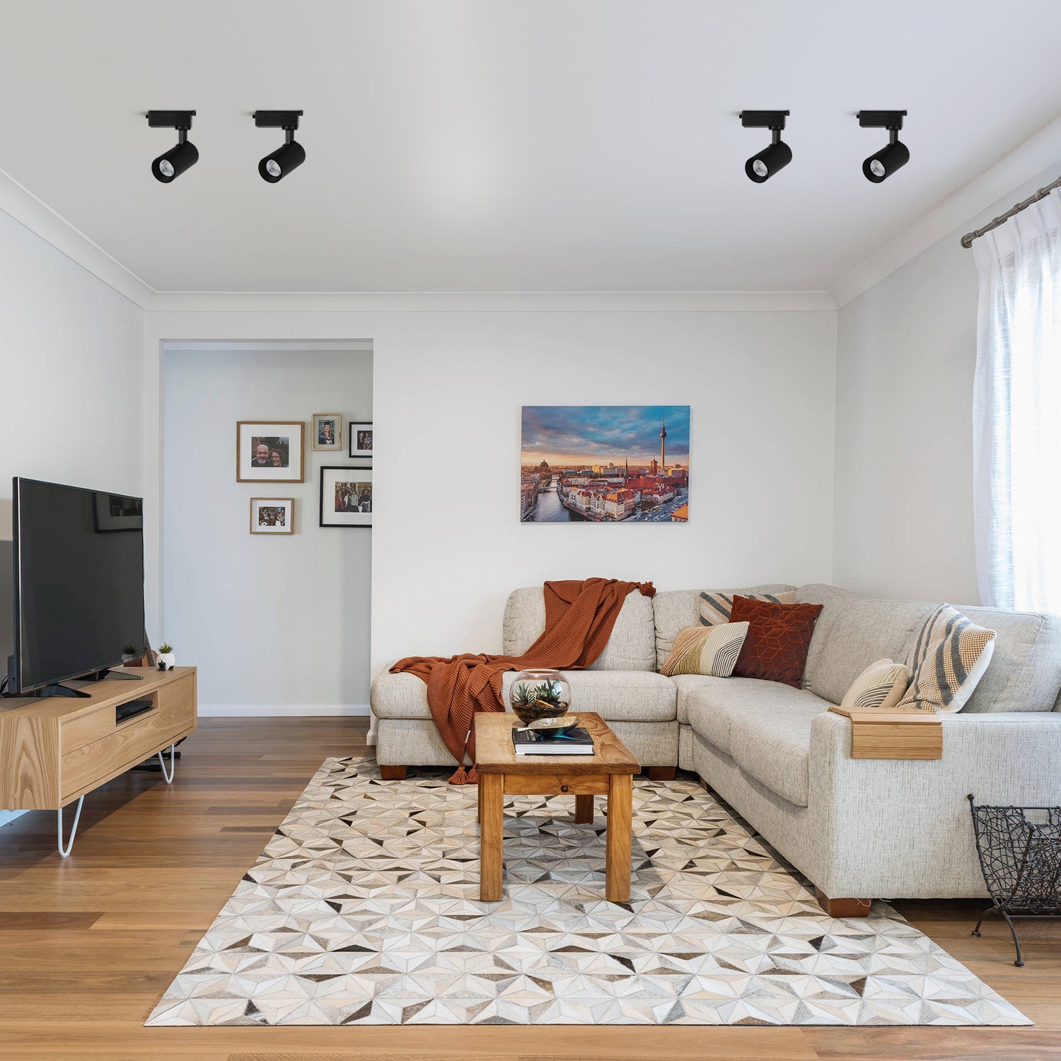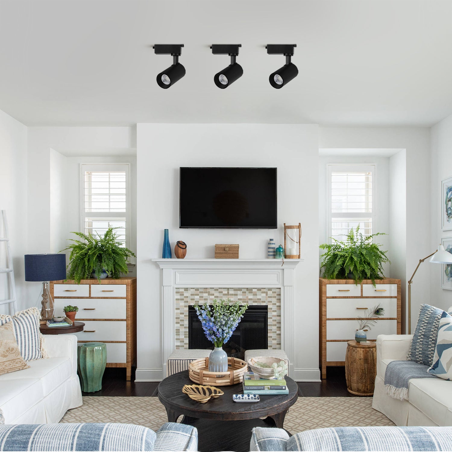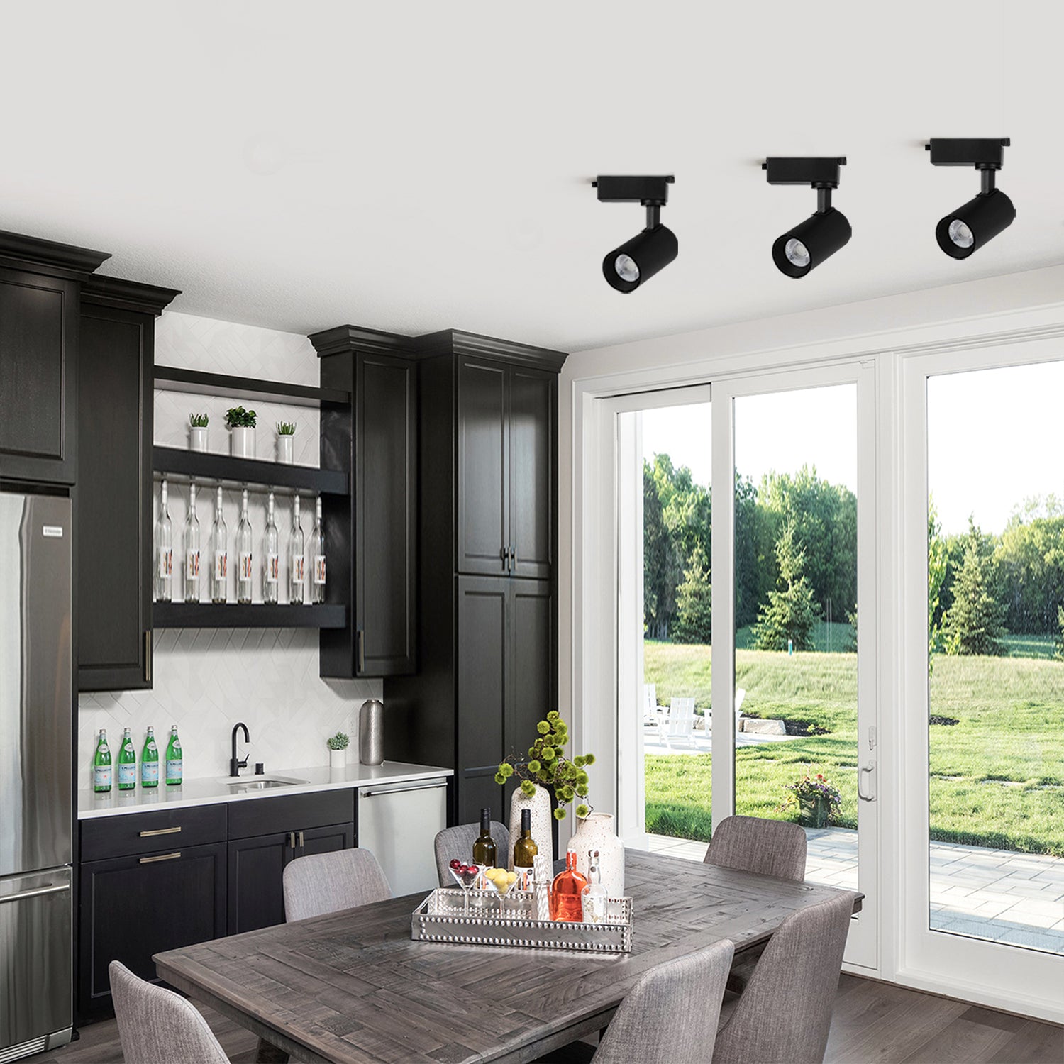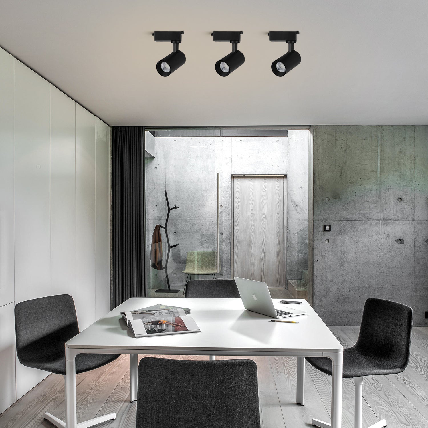 The Track Spotlight is a lighting fixture designed for installation on standard track lighting systems. It features an adjustable head that can be rotated to direct light toward specific areas.